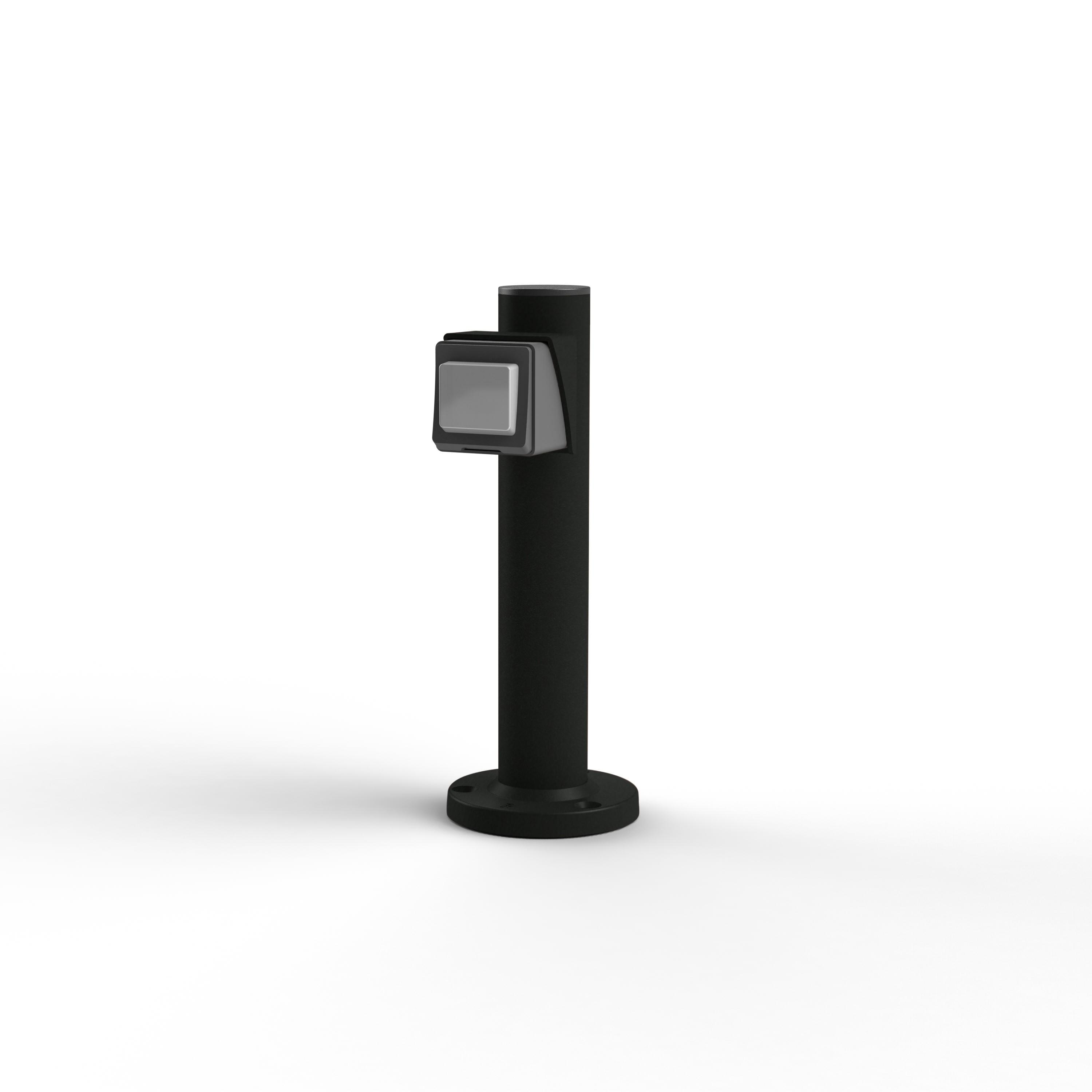 Accessoire, borne en aluminium équipée d'une prise de courant Suisse type J IP55. Teinte Gris anthracite 006