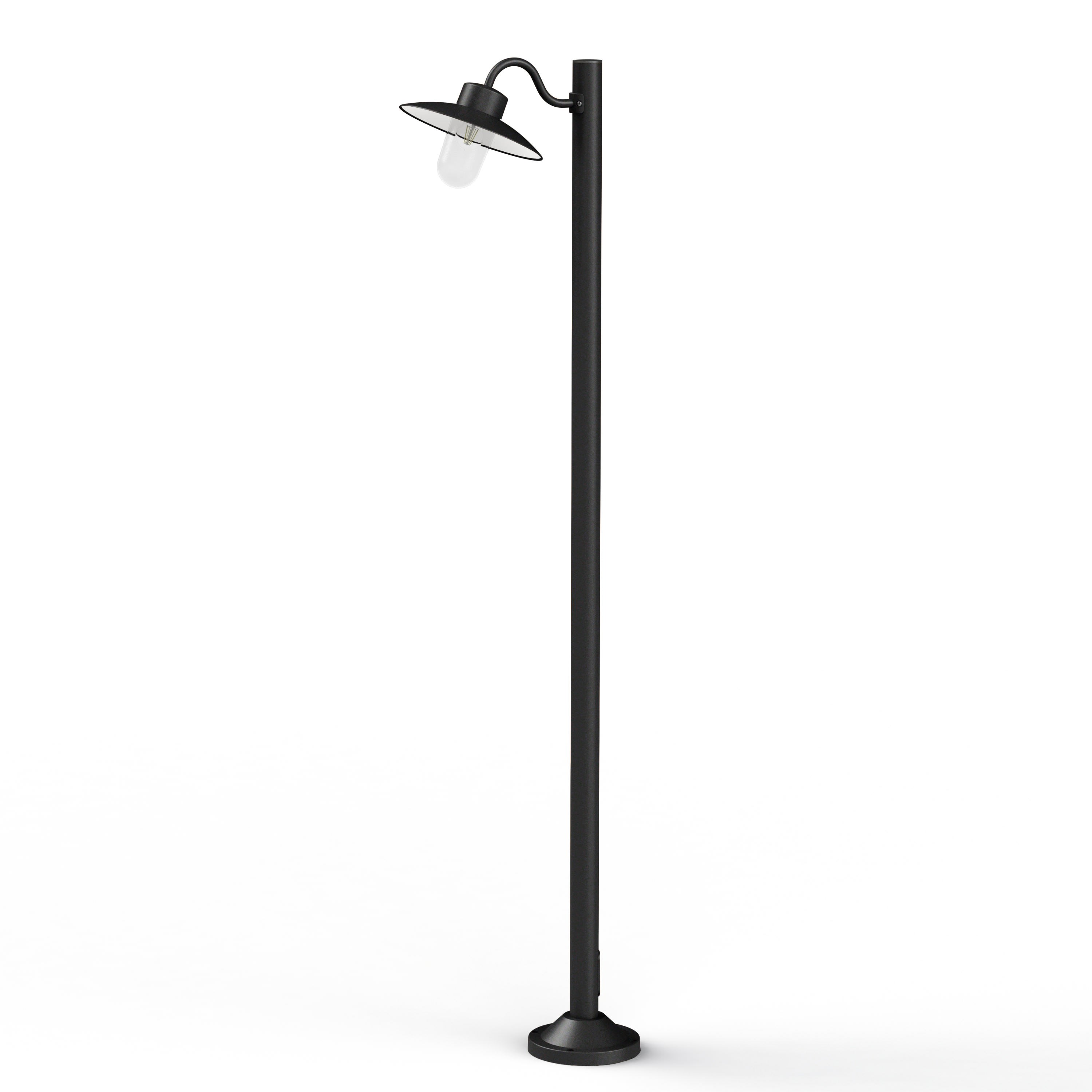 Lampadaire BELCOUR 1 tête en aluminium, E27, IP44, classe 1, diffuseur verre clair. Réflecteur blanc. Teinte RAL 9005 Noir foncé 000. Garantie 25 ans anticorrosion sur l'aluminium