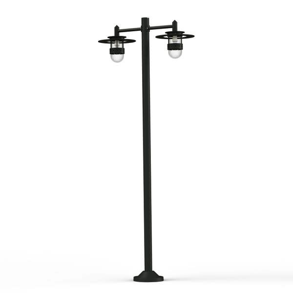 Lampadaire 2 têtes KENT h=2200mm en aluminium, E27, IP44, classe 1, diffuseur verre clair. Teinte Gris anthracite 006. Garantie 25 ans anticorrosion sur l'aluminium