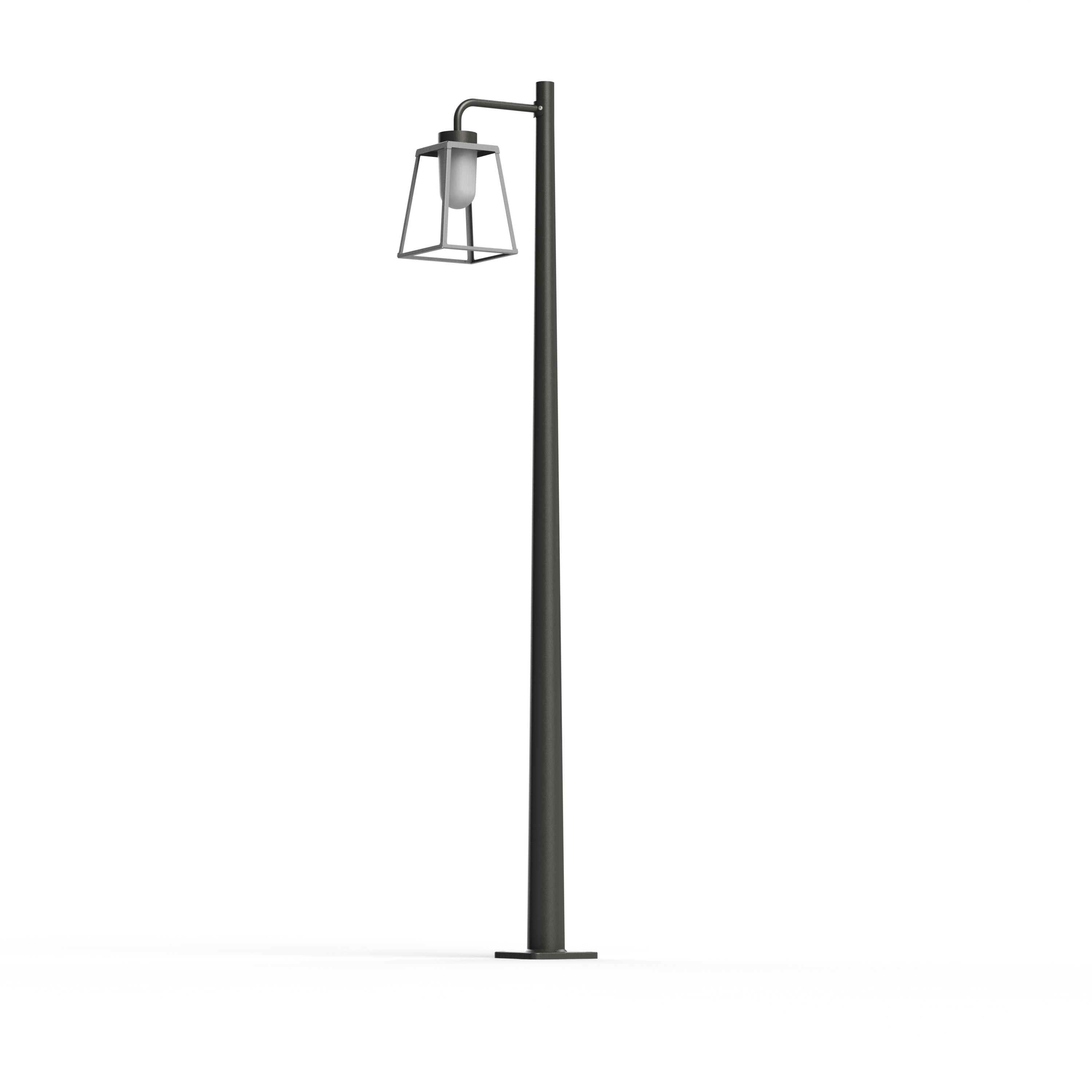 Lampadaire 1 tête LAMPIOK 2 en aluminium, E27, IP65, classe 1, diffuseur verre opale. Cage : teinte RAL 7044 Gris soie 105. Mât, bras : teinte RAL 7021 Gris noir 107. Garantie 25 ans anticorrosion sur l'aluminium