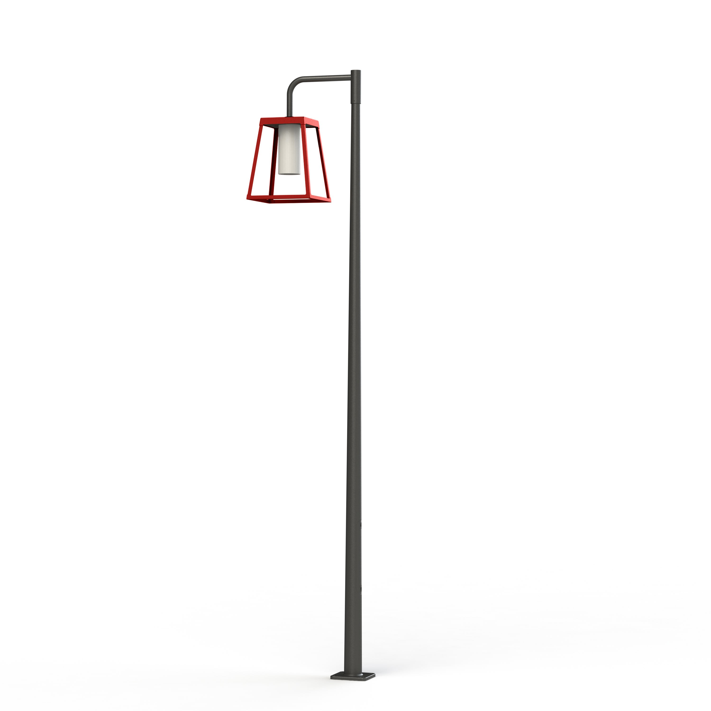 Lampadaire 1 tête LAMPIOK 4 en aluminium, Module Led intégré 35W 2700°K, diffuseur tube 150 mm, Mât+bras Teinte RAL 7021 Gris noir 107 + Cage teinte RAL 3013 Rouge tomate 110. Garantie 25 ans anticorrosion sur l'aluminium