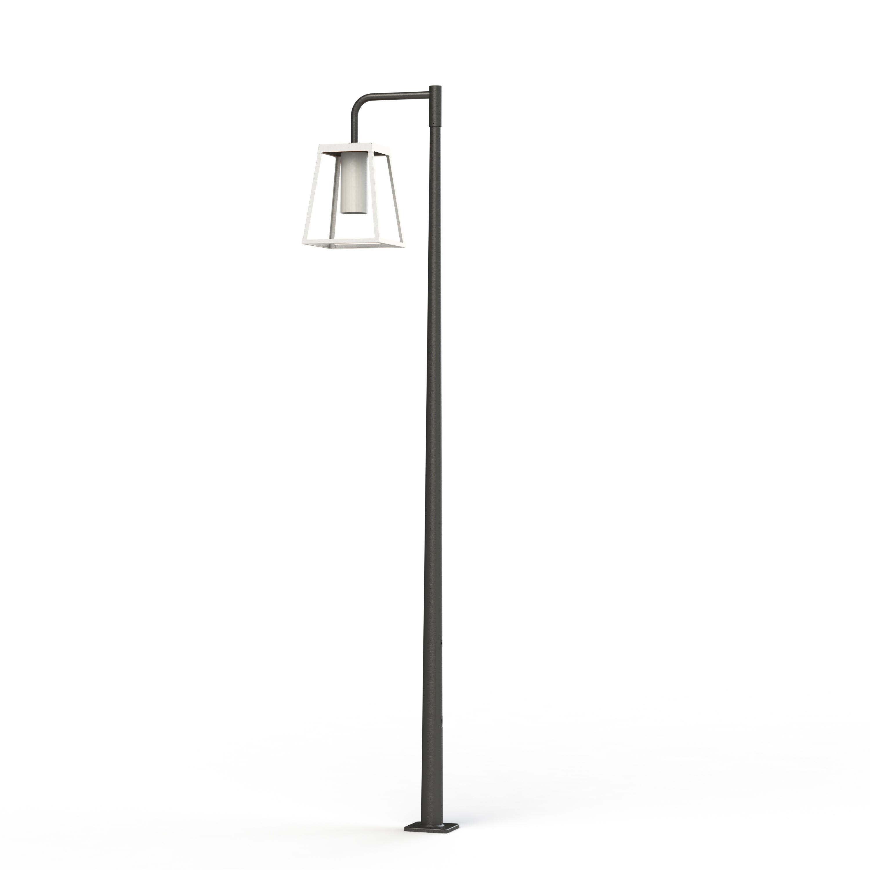 Lampadaire 1 tête LAMPIOK 4 en aluminium, module Led intégré 35W 3000°K, diffuseur tube 150 mm. Mât, bras teinte RAL 7021 Gris noir 107, cage : teinte RAL 9010 Blanc pur 101. Garantie 25 ans anticorrosion sur l'aluminium