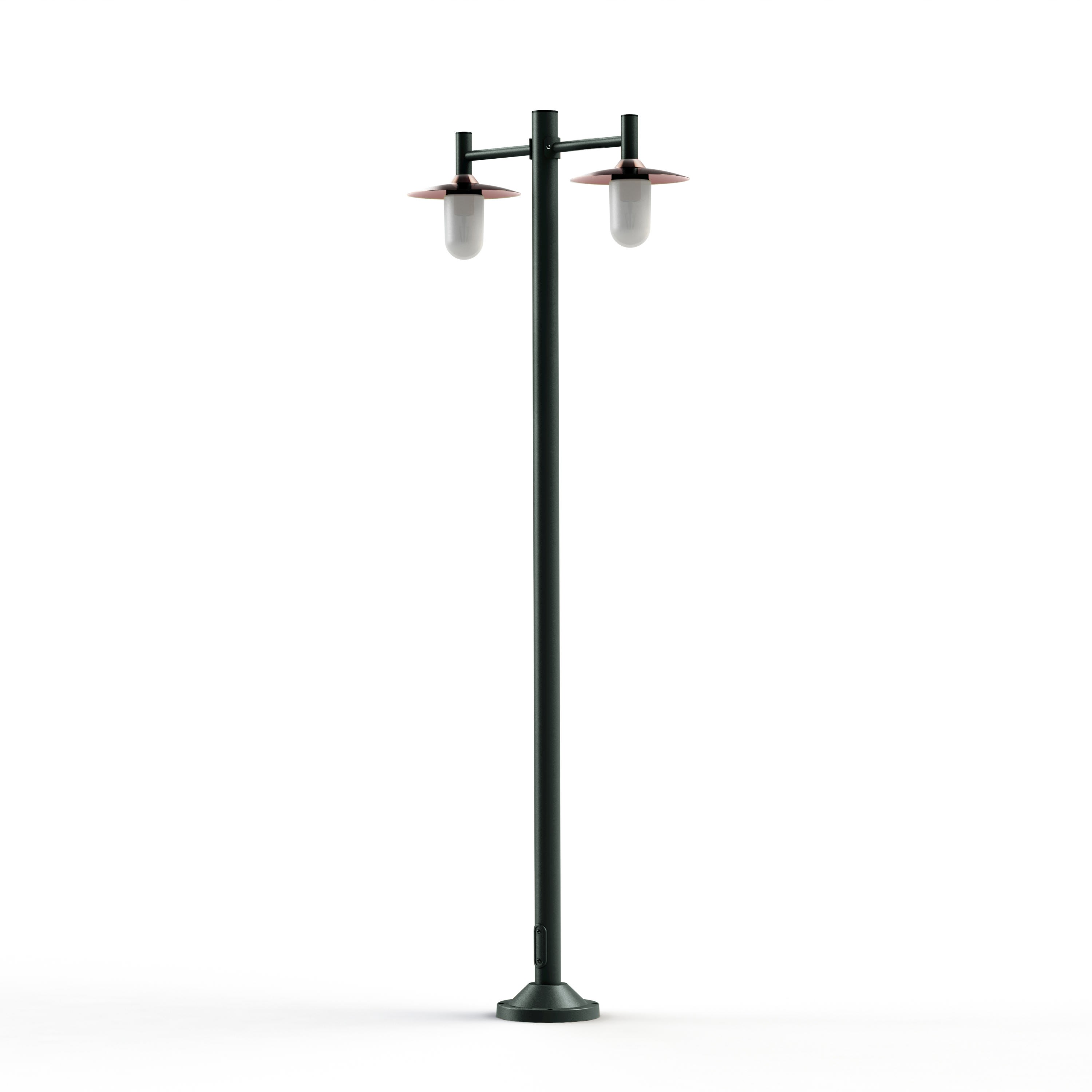 Lampadaire 2 têtes MONTANA, E27, IP44, classe 1, diffuseurs verre dépoli. Mât+bras en aluminium Teinte Gris ardoise 059 + dômes en cuivre brut