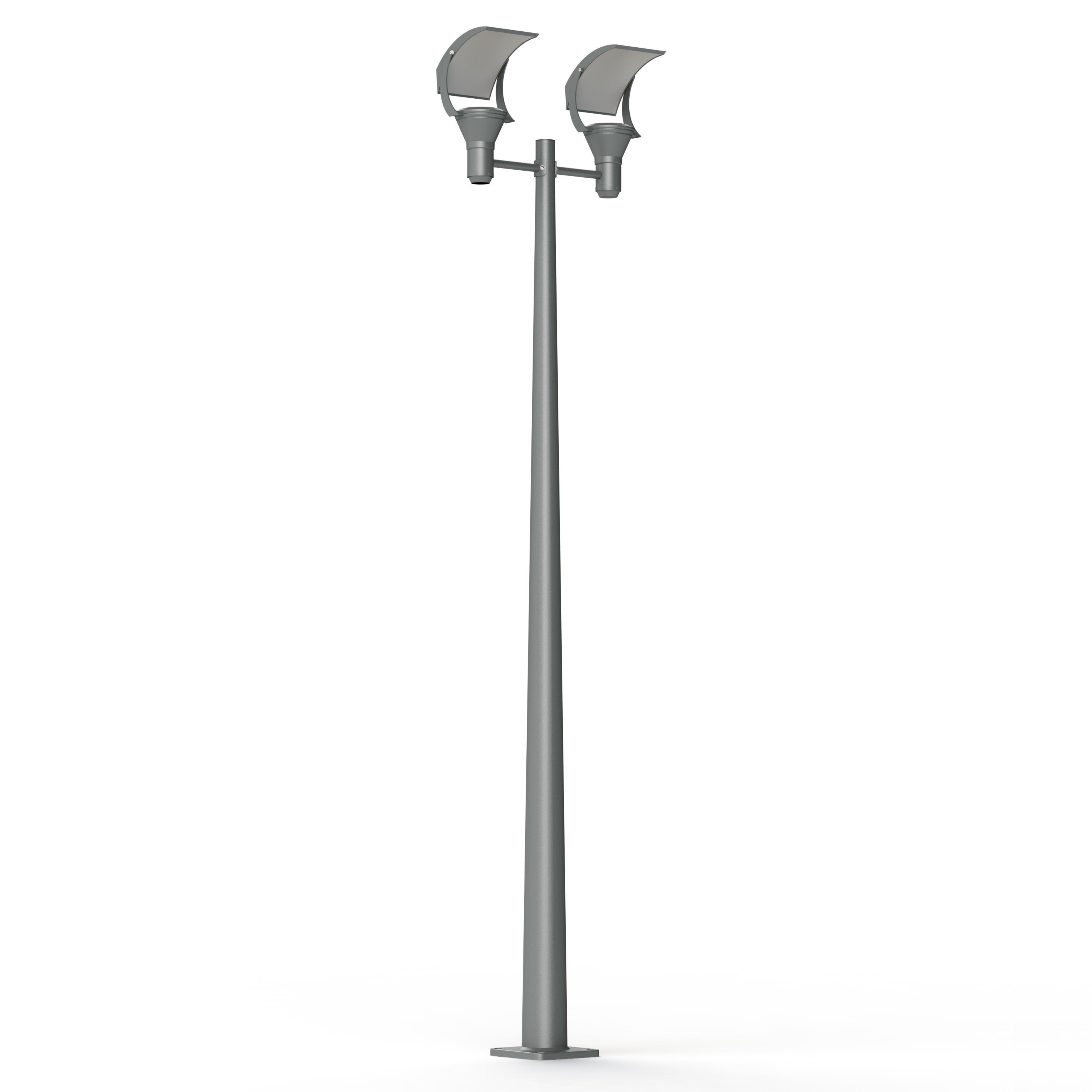 Lampadaire 2 lumières OL33 en aluminium, H3300mm, réflecteurs orientables, éclairage indirect, 4500°K intégrée, IP55, classe 1, diffuseurs verre trempé dépoli. Teinte Gris soie 105. Garantie 25 ans anticorrosion sur l'aluminium.