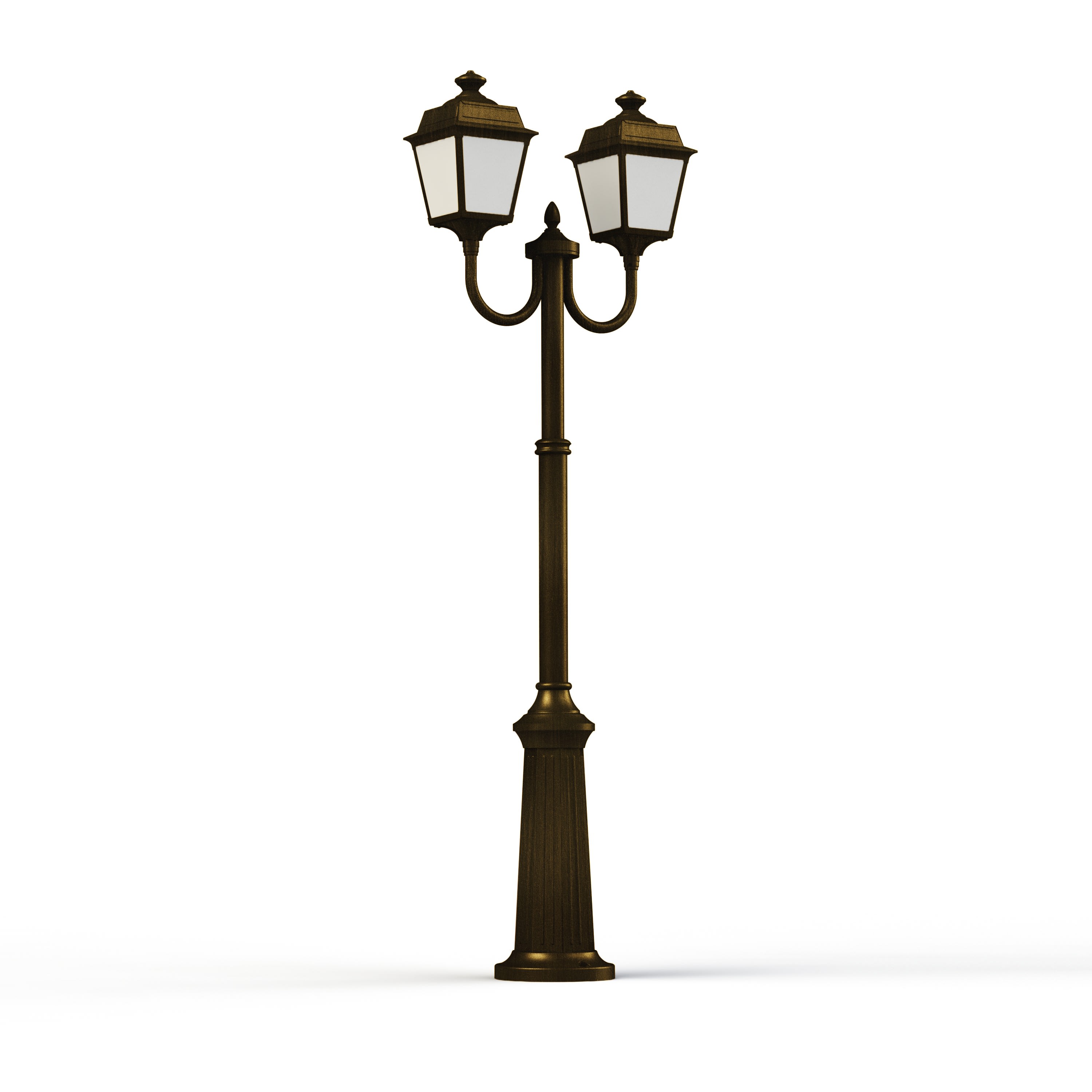 Lampadaire 2 têtes PLACE DES VOSGES TRADITION, hauteur 1977mm, en aluminium, télescopique, E27, IP44, classe 1, diffuseurs verre opale. Finition Patine dorée 009. Garantie 25 ans anticorrosion sur l'aluminium