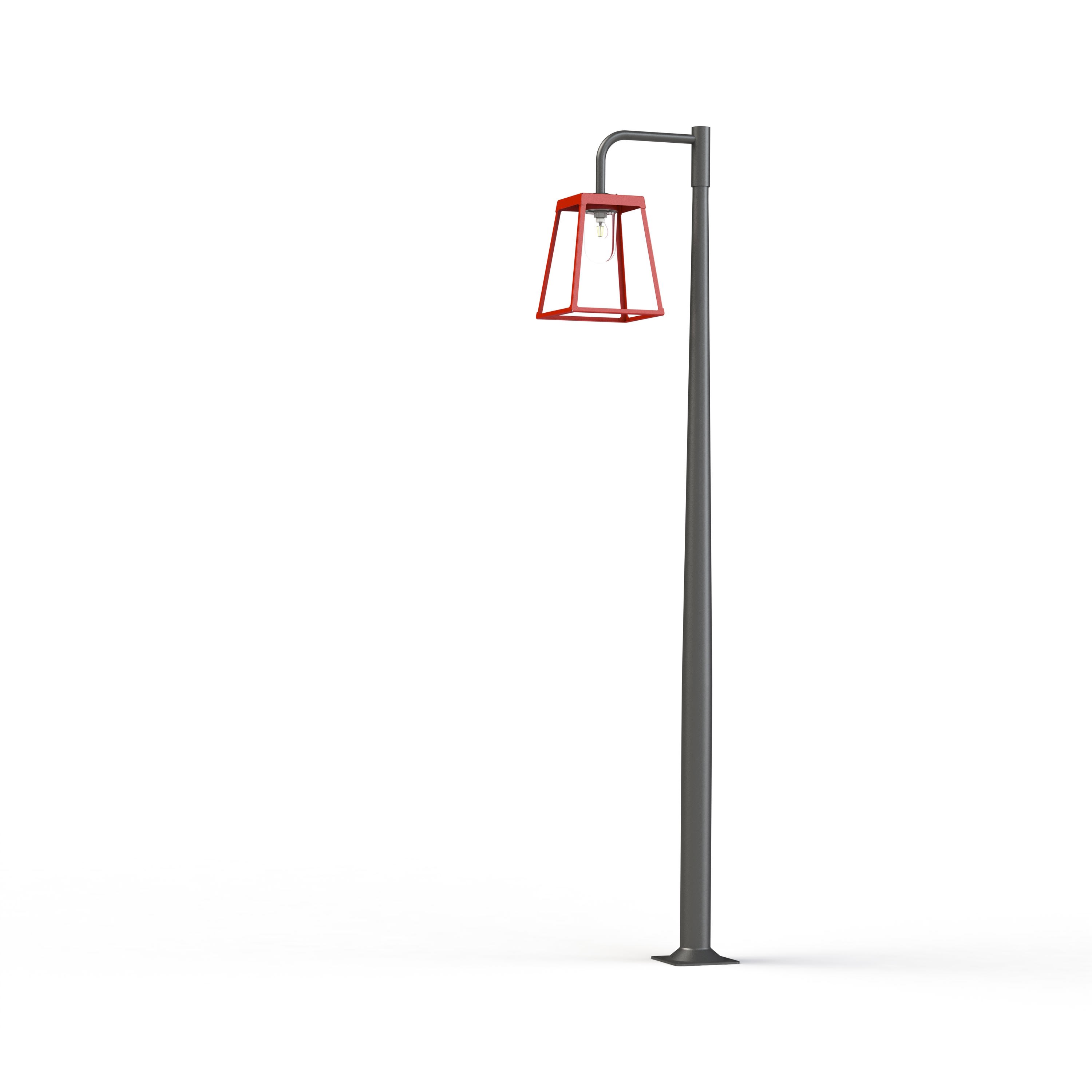 Mat 1L LAMPIOK 3 en aluminium, E27, IP65, classe 1, diffuseur verre clair. Cage : teinte RAL 3013 Rouge Tomate 110. Mat + Bras : teinte RAL 7021 Gris noir 107. Garantie 25 ans anticorrosion sur l'aluminium
