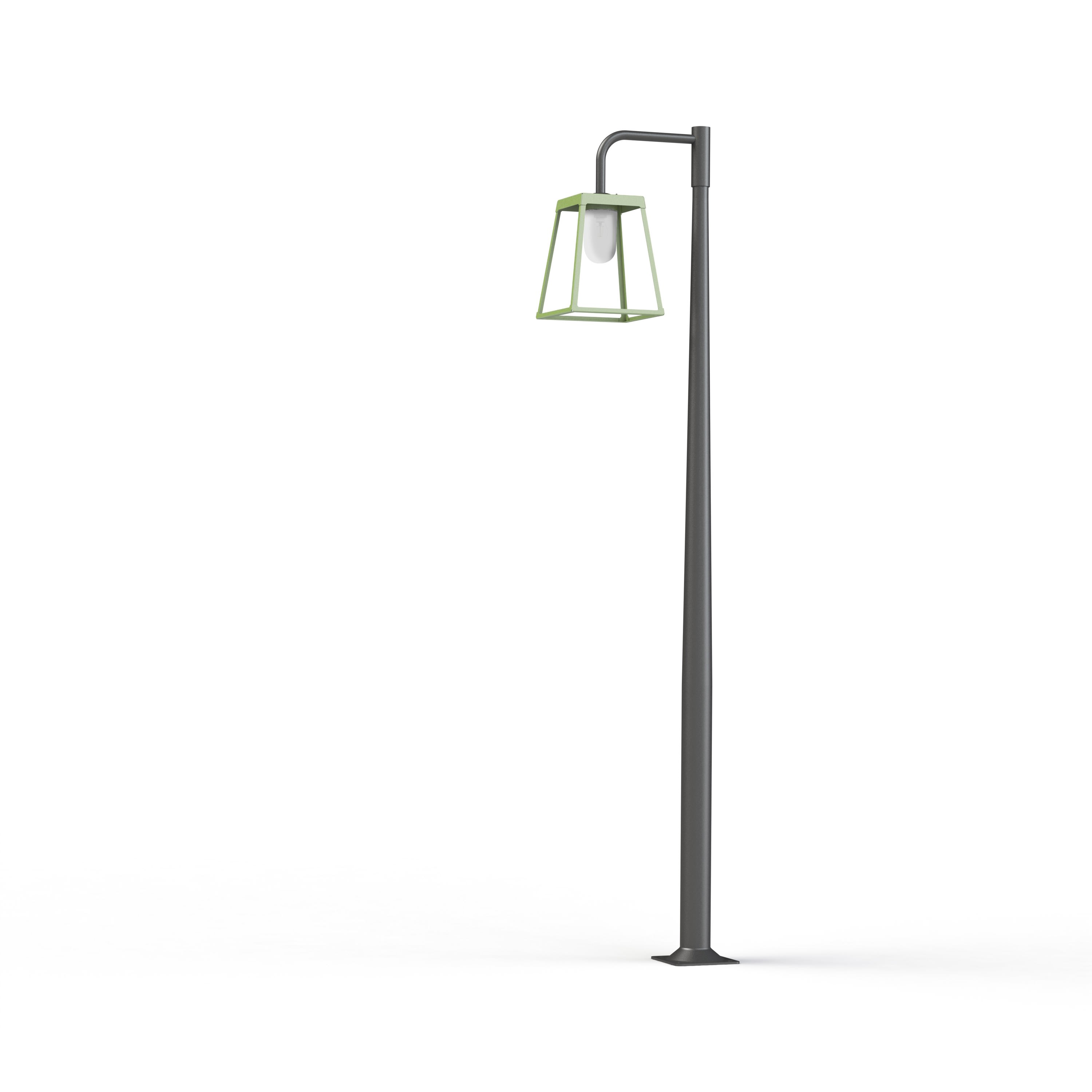 Mat 1L LAMPIOK 3 en aluminium, E27, IP65, classe 1, diffuseur verre dépoli. Cage : teinte RAL 6021 Vert Pâle 133. Mat + Bras : teinte RAL 7021 Gris noir 107. Garantie 25 ans anticorrosion sur l'aluminium