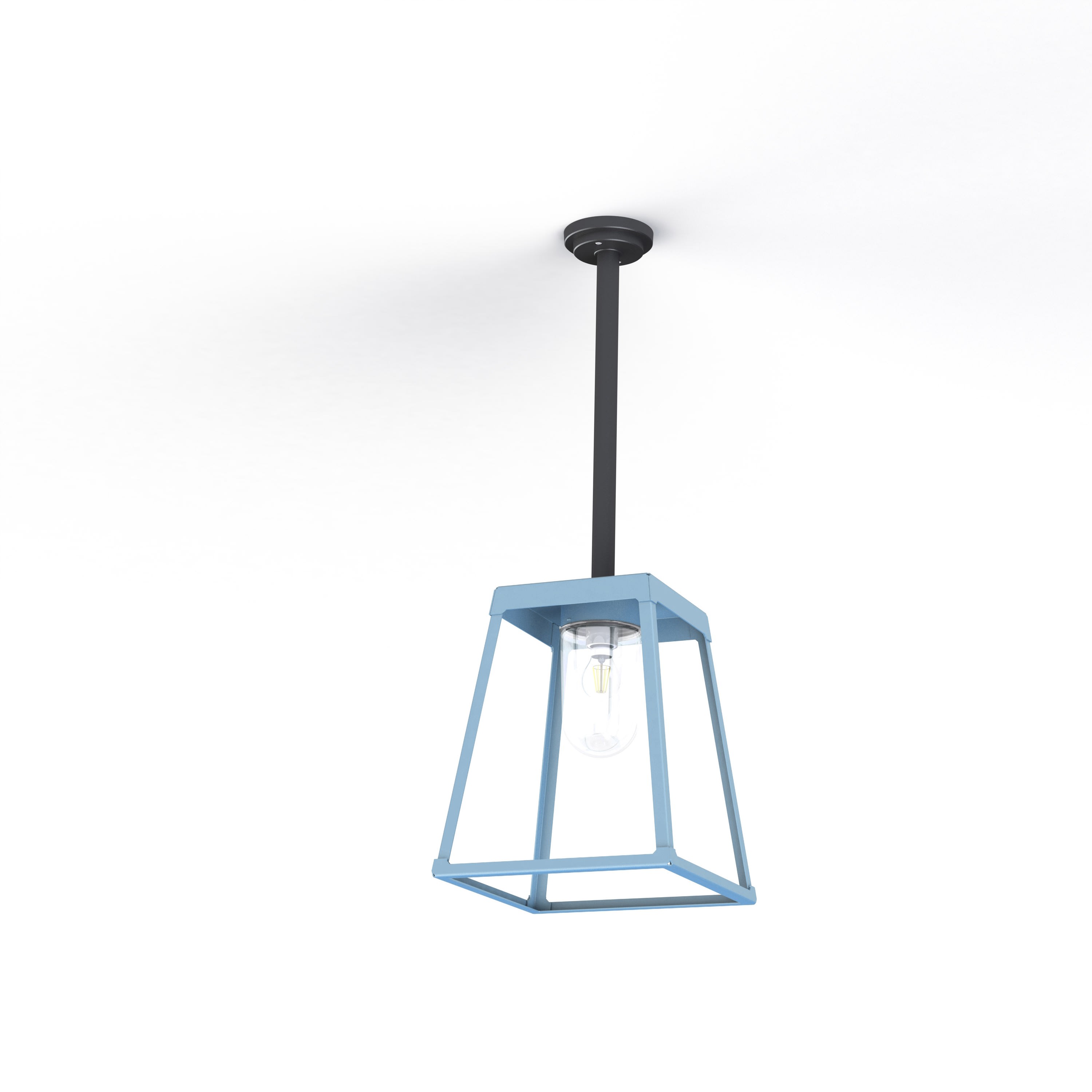 Plafonnier LAMPIOK 3 en aluminium, E27, IP65, classe 1, diffuseur verre clair. Cage : teinte Bleu 111 Tige : teinte RAL 7021 Gris noir 107. Garantie 25 ans anticorrosion sur l'aluminium