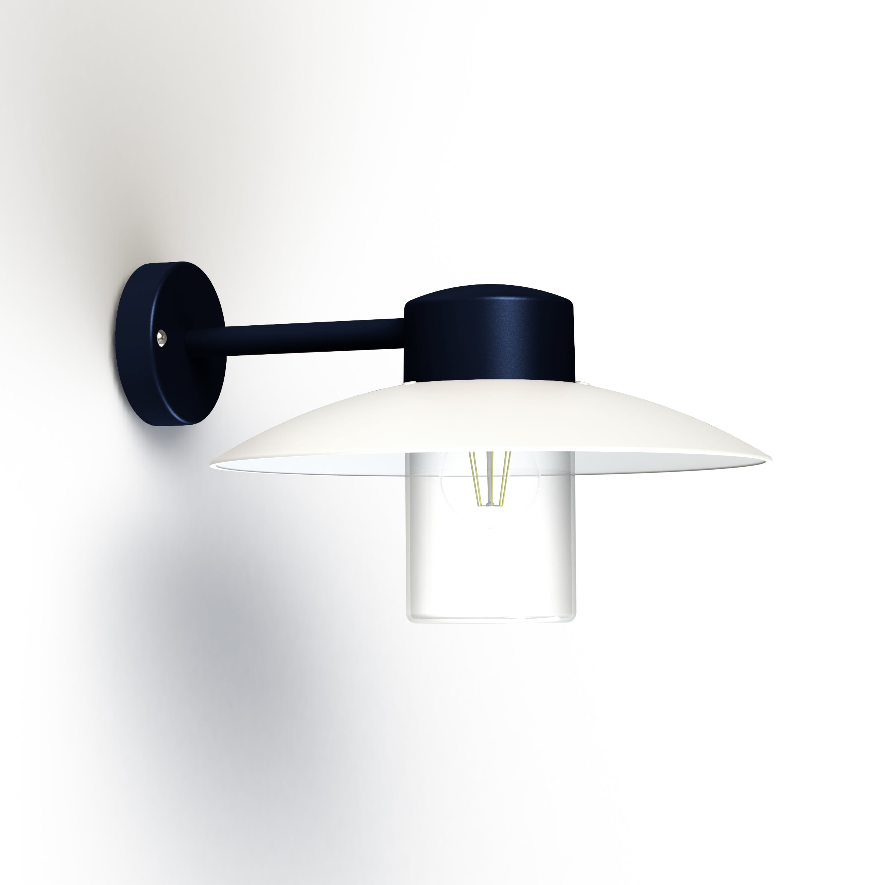 Applique AUBANNE en aluminium, E27, IP44, classe 1, réflecteur en polycarbonate opale, diffuseur verre clair. Teinte RAL 5011 Bleu acier 065. Garantie 25 ans anticorrosion sur l'aluminium