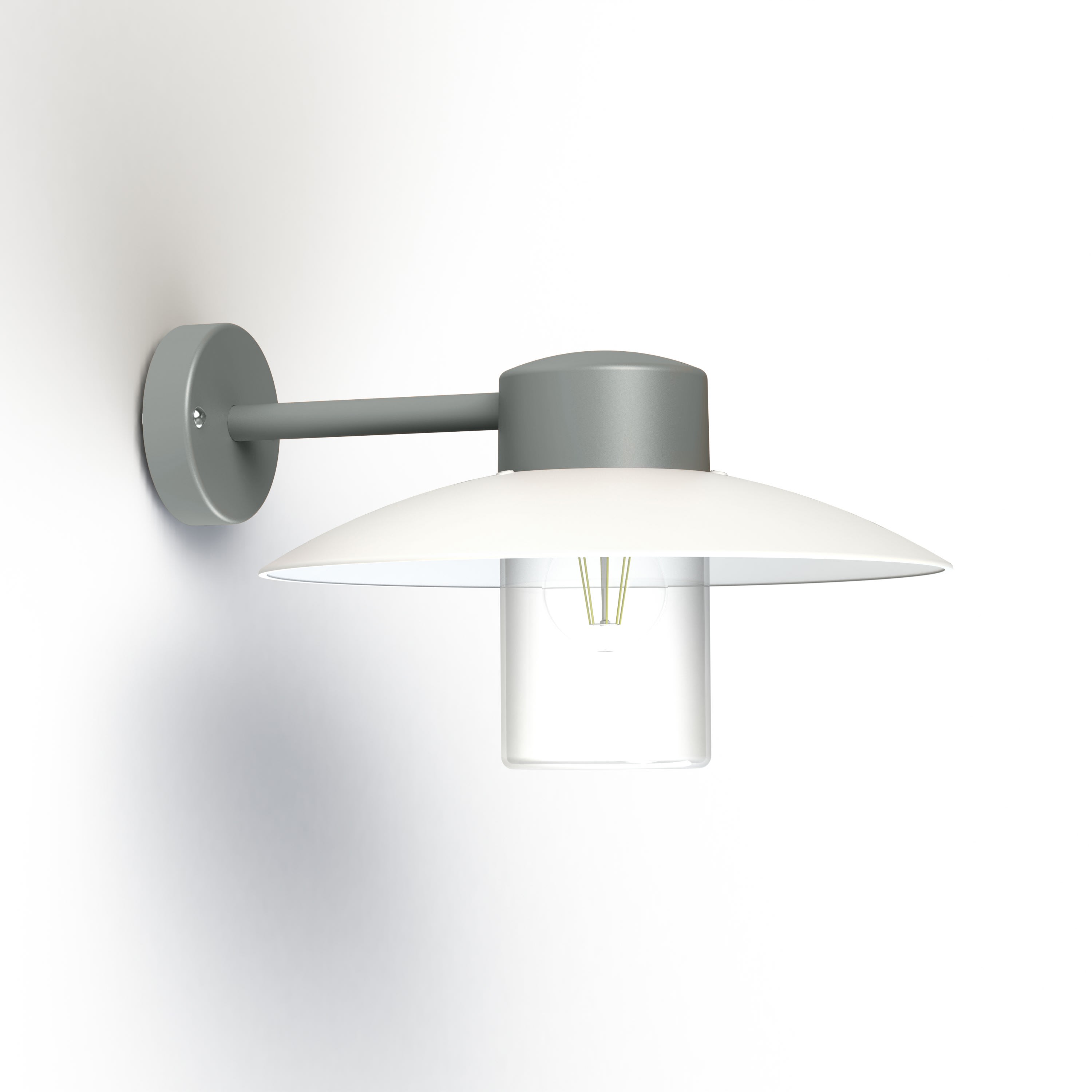 Applique AUBANNE en aluminium, E27, IP44, classe 1, réflecteur en polycarbonate opale, diffuseur verre clair. Teinte Gris métal 023. Garantie 25 ans anticorrosion sur l'aluminium