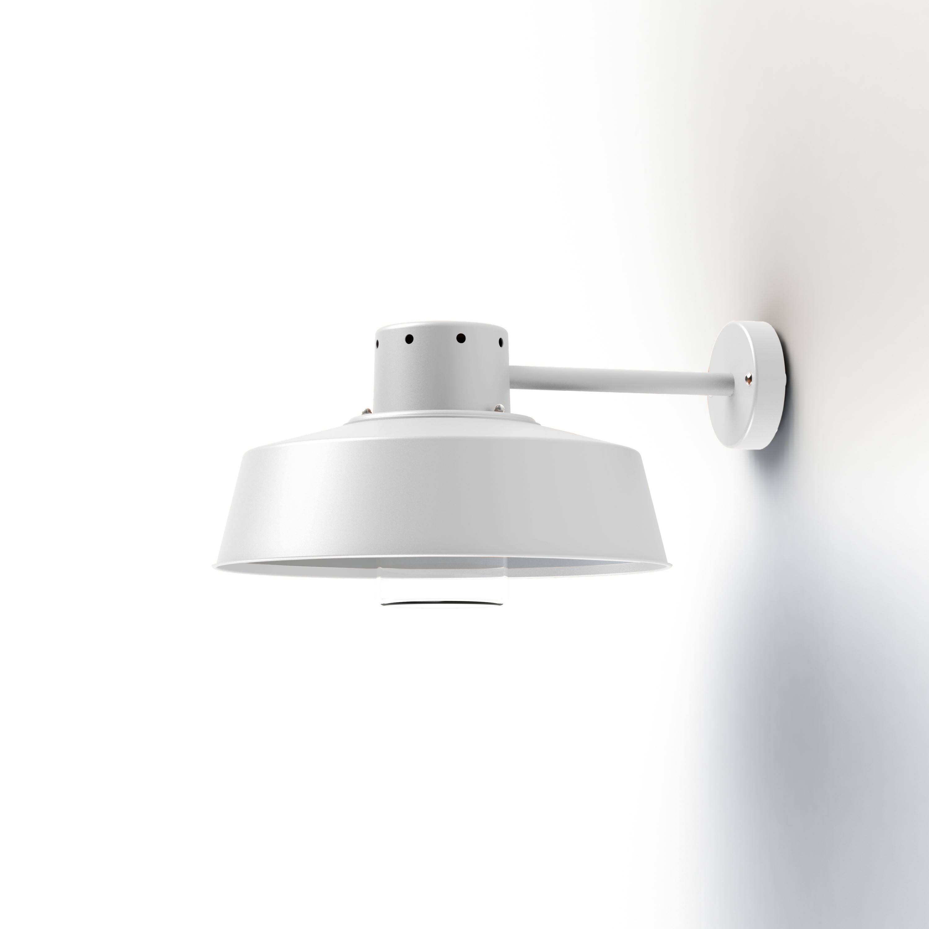 Applique FAKTORY, en aluminium, E27, IP44, classe 1, réflecteur intérieur blanc, diffuseur verre clair. Teinte RAL 9010 Blanc pur 101. Garantie 25 ans anticorrosion sur l'aluminium