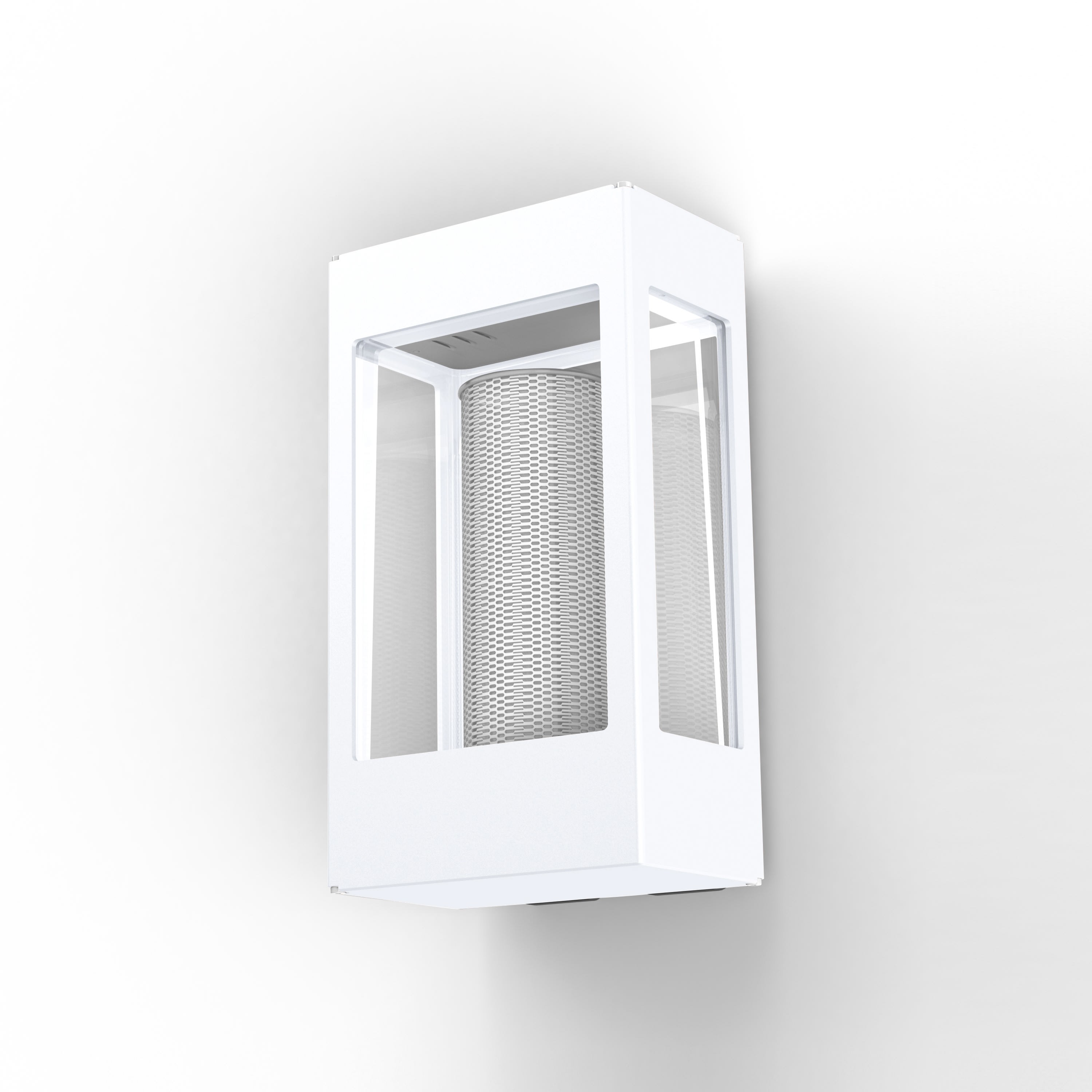 Applique TETRA en aluminium, E27, IP65, IK10, classe 1, diffuseur polycarbonate clair, paralume inox, 4 faces éclairantes. Teinte RAL 9010 Blanc pur 101. Garantie 25 ans anticorrosion sur l'aluminium