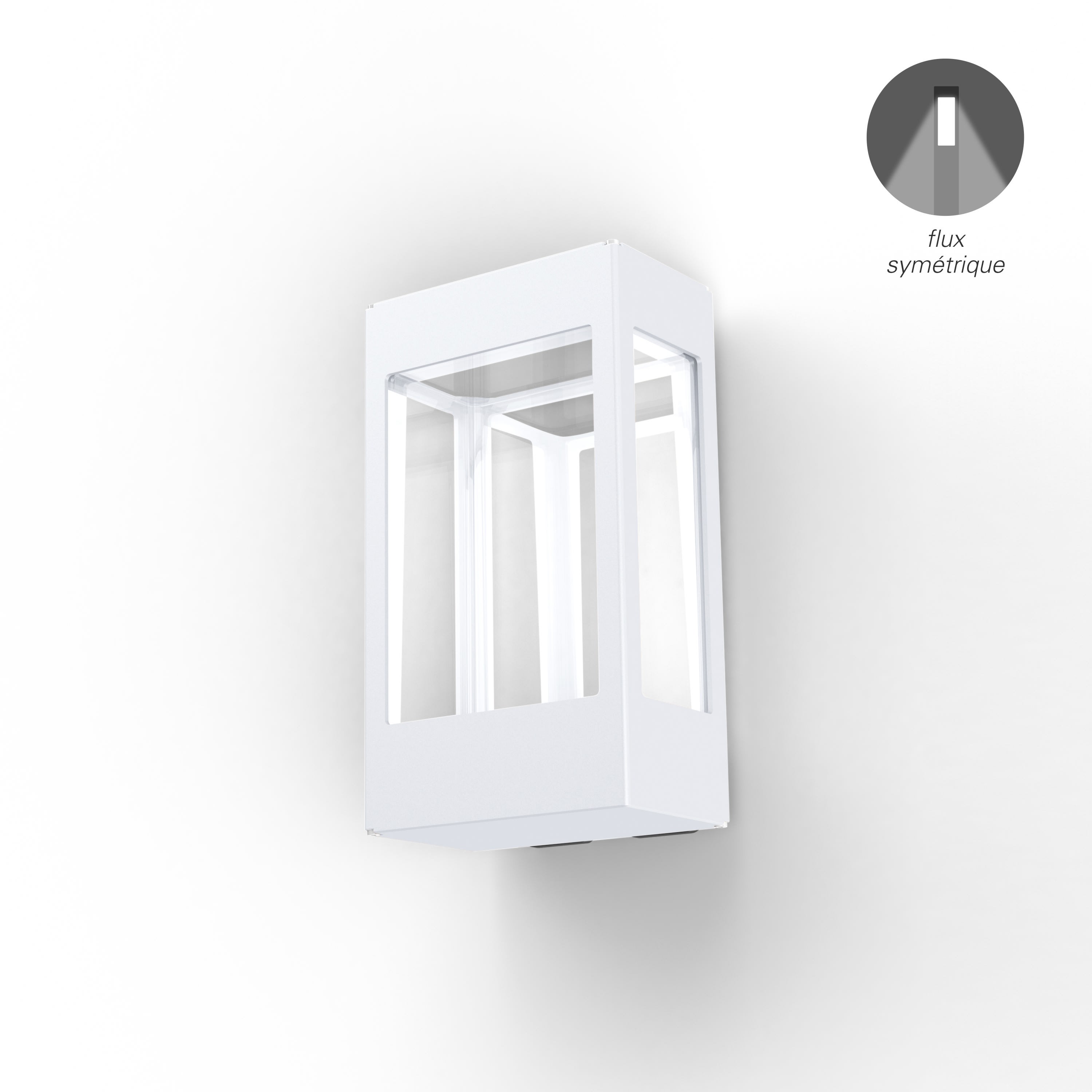 Applique TETRA S en aluminium, LED 12W 2700°K intégrée, IP65, IK10, classe 1, diffuseur polycarbonate clair, 4 faces éclairantes. Teinte Blanc 001. Garantie 25 ans anticorrosion sur l'aluminium