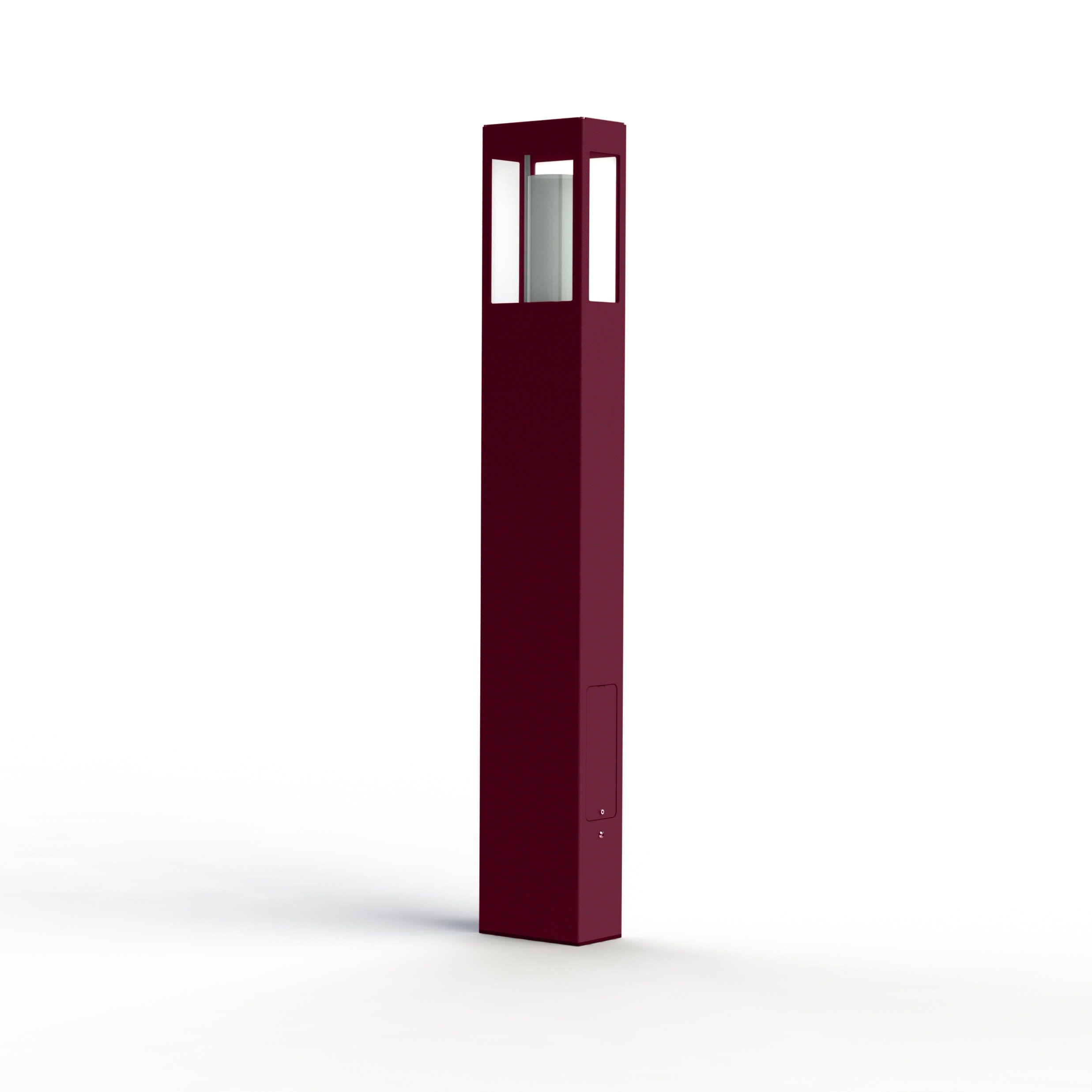 Borne BRICK² hauteur 1100mm, en aluminium, E27, IP44, classe 2, vitrage verre clair, diffuseur satiné. Teinte RAL 3005 Rouge vin 066. Garantie 25 ans anticorrosion sur l'aluminium