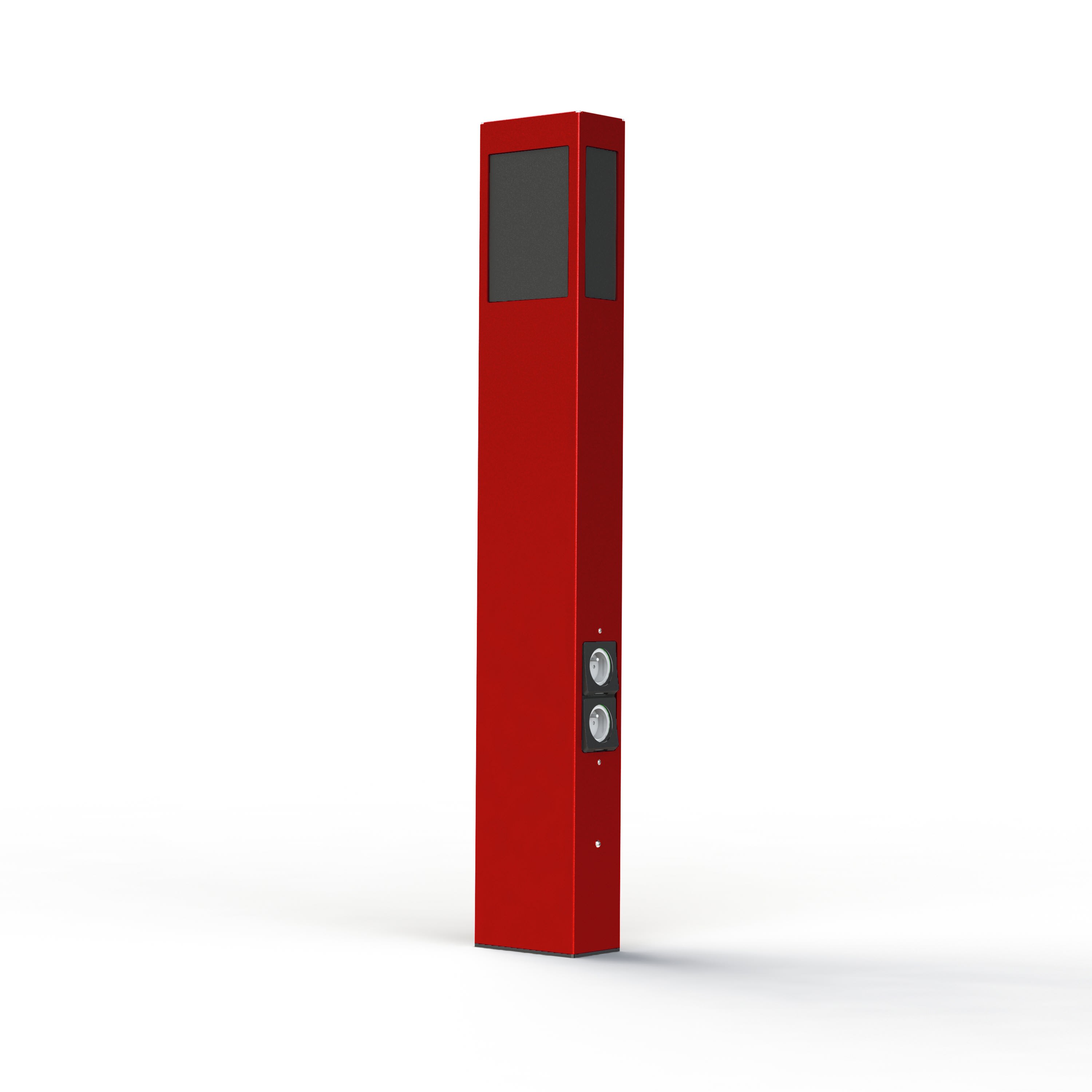 Borne BRICK² hauteur 1100mm avec 2 prises FR, en aluminium, E27, IP44, classe 2, vitrage PMMA noir. Teinte RAL 3013 Rouge tomate 110. Garantie 25 ans anticorrosion sur l'aluminium