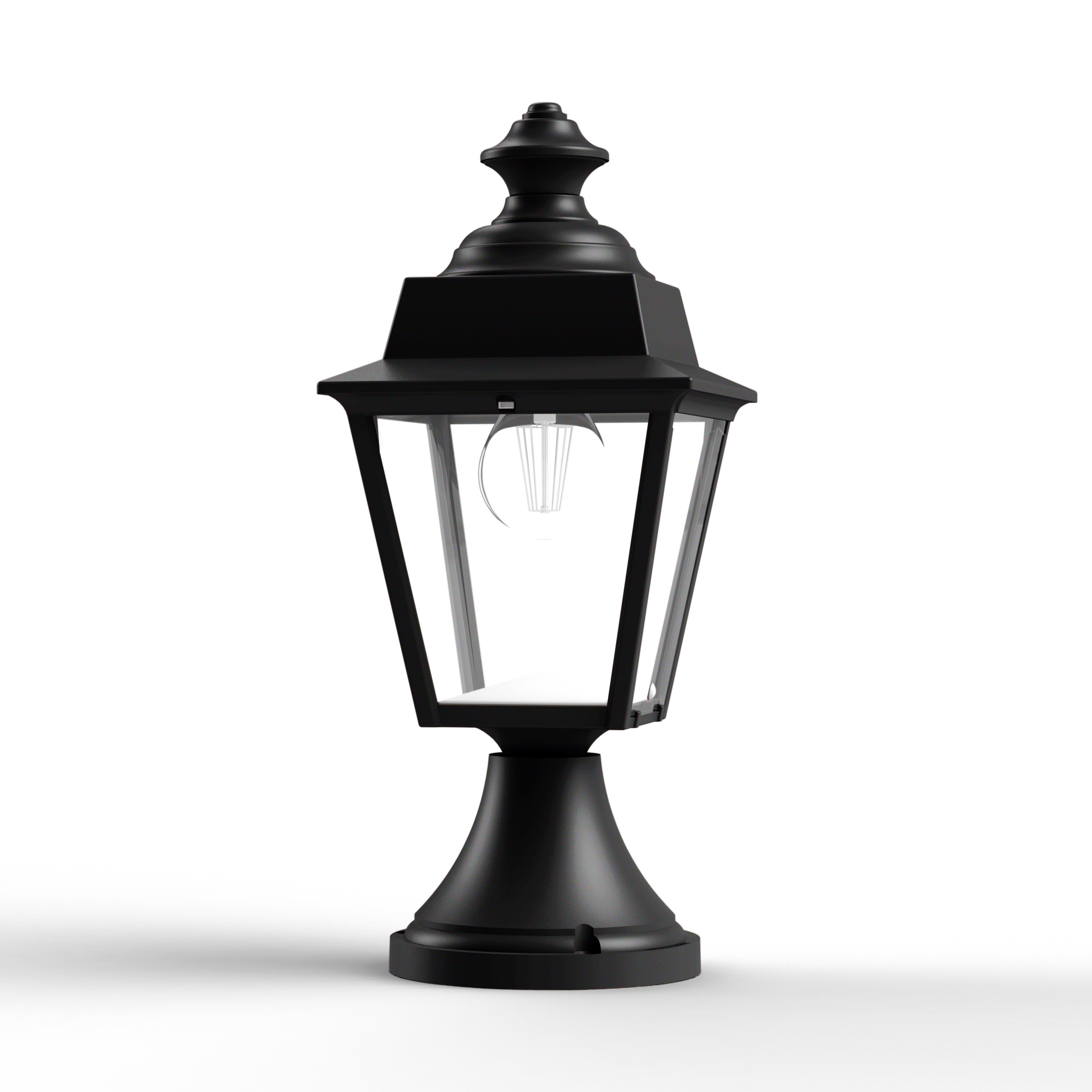Borne CHENONCEAU en aluminium, E27, IP44, classe 1, diffuseurs verre clair. Teinte RAL 9005 Noir foncé 000. Garantie 25 ans anticorrosion sur l'aluminium