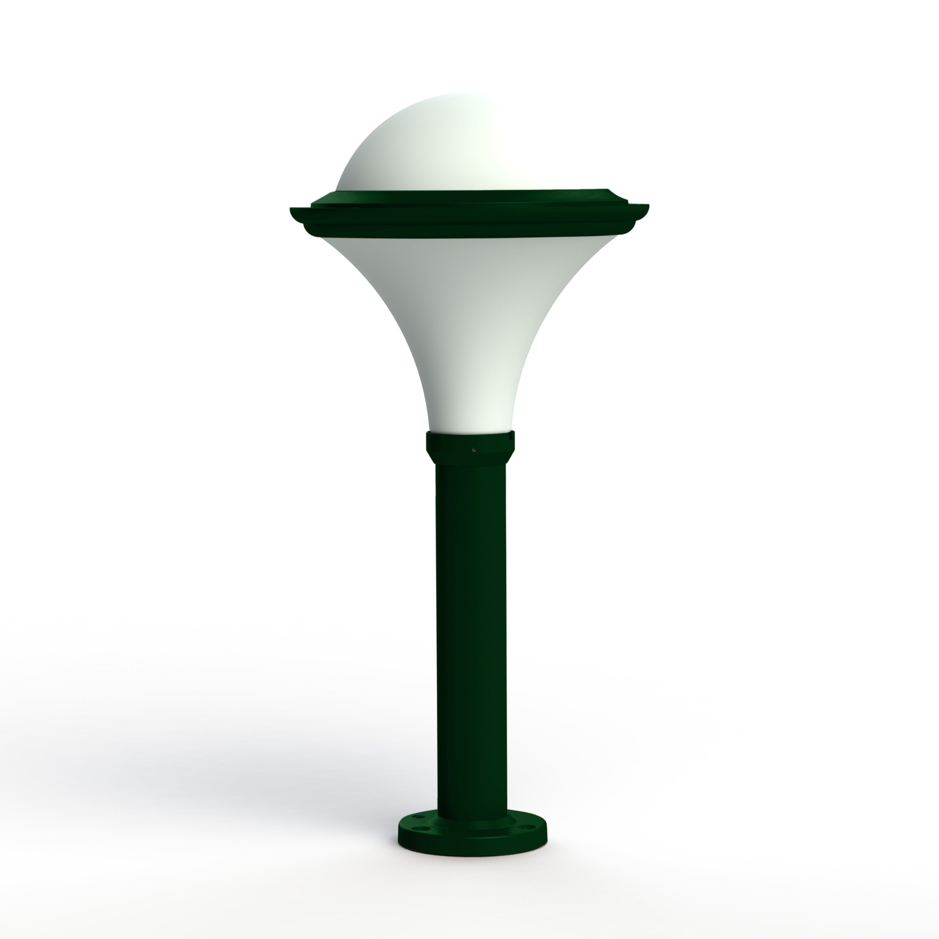 Borne DALLAS en aluminium, E27, IP44, IK10, classe 1, hauteur 676mm, diffuseur polycarbonate opale. Teinte RAL 6009 Vert sapin 067. Garantie 25 ans anticorrosion sur l'aluminium