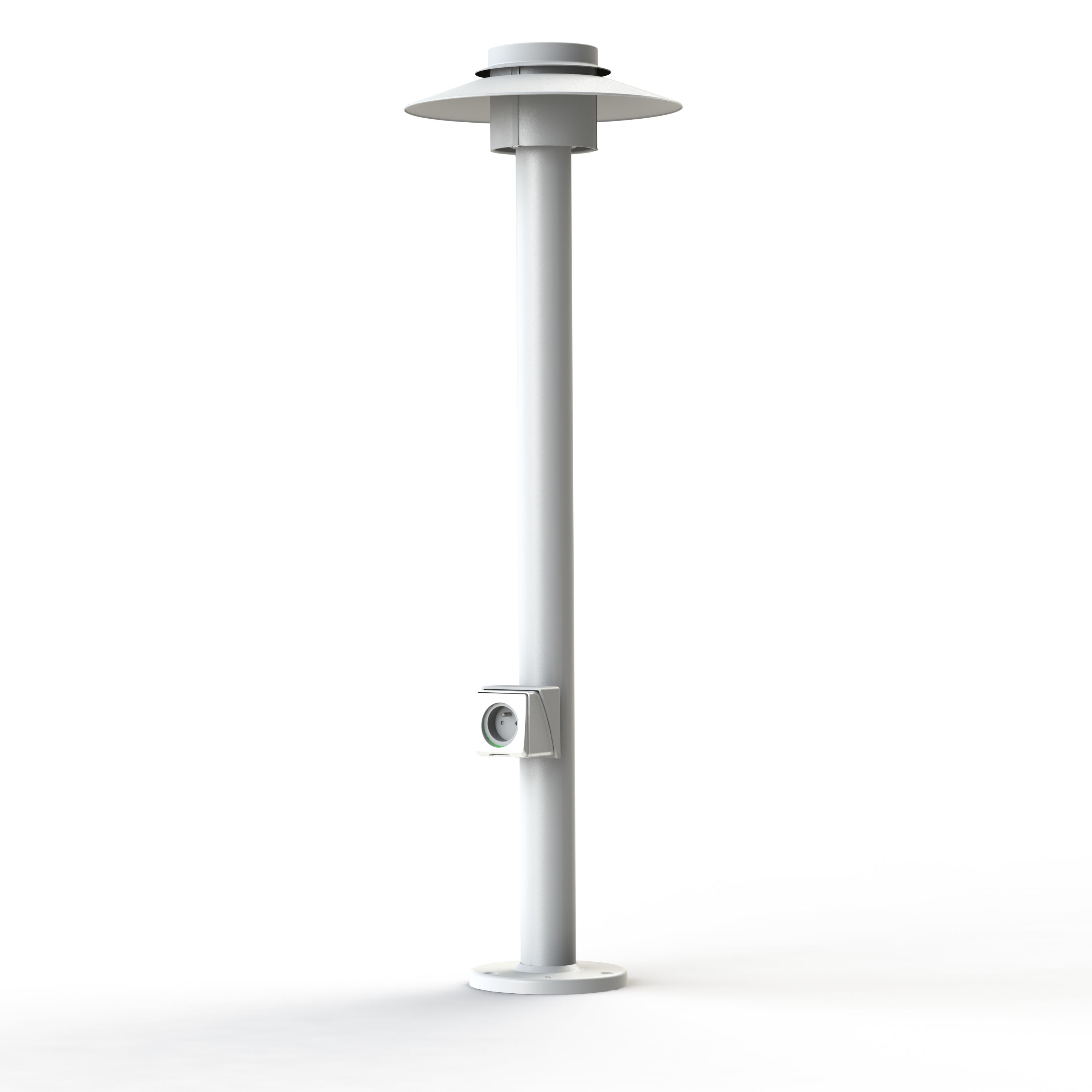Borne KERLOUAN en aluminium, avec prise, hauteur 1060mm, E27, IP44, classe 1, diffuseur polycarbonate clair. Teinte Blanc 001. Garantie 25 ans anticorrosion sur l'aluminium
