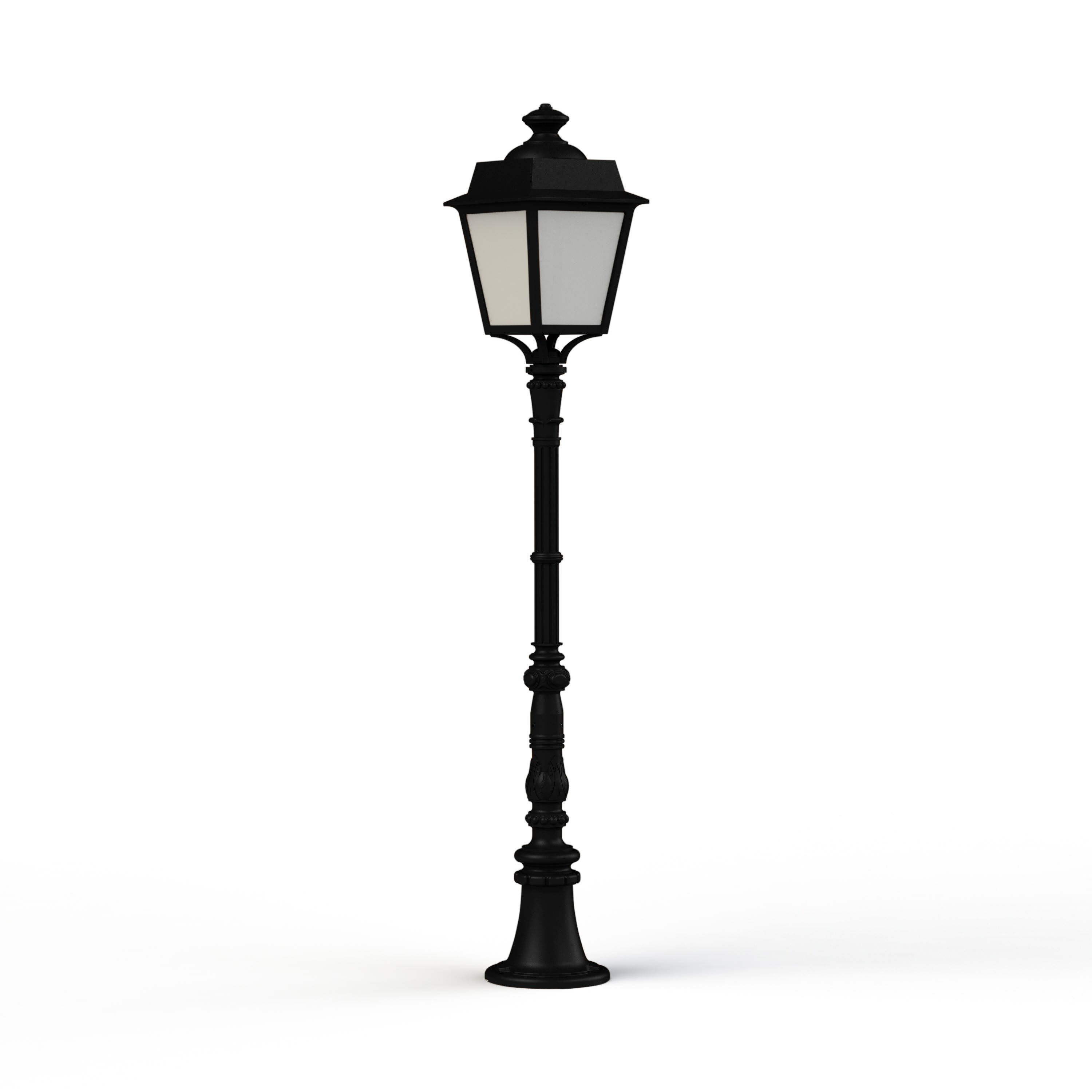 Borne PLACE DES VOSGES EVOLUTION en aluminium, hauteur 1310mm, E27, IP65, classe 1, bloc diffuseur méthacrylate opale. Teinte RAL 9005 Noir foncé 000. Garantie 25 ans anticorrosion sur l'aluminium