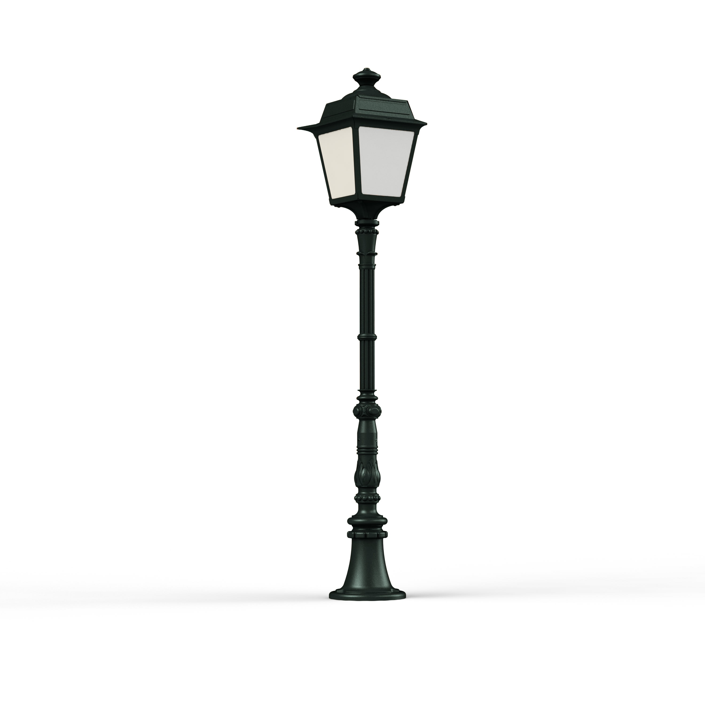 Borne PLACE DES VOSGES TRADITION, hauteur 1296mm, en aluminium, E27, IP44, classe 1, diffuseurs verre opale. Teinte Gris ardoise 059. Garantie 25 ans anticorrosion sur l'aluminium