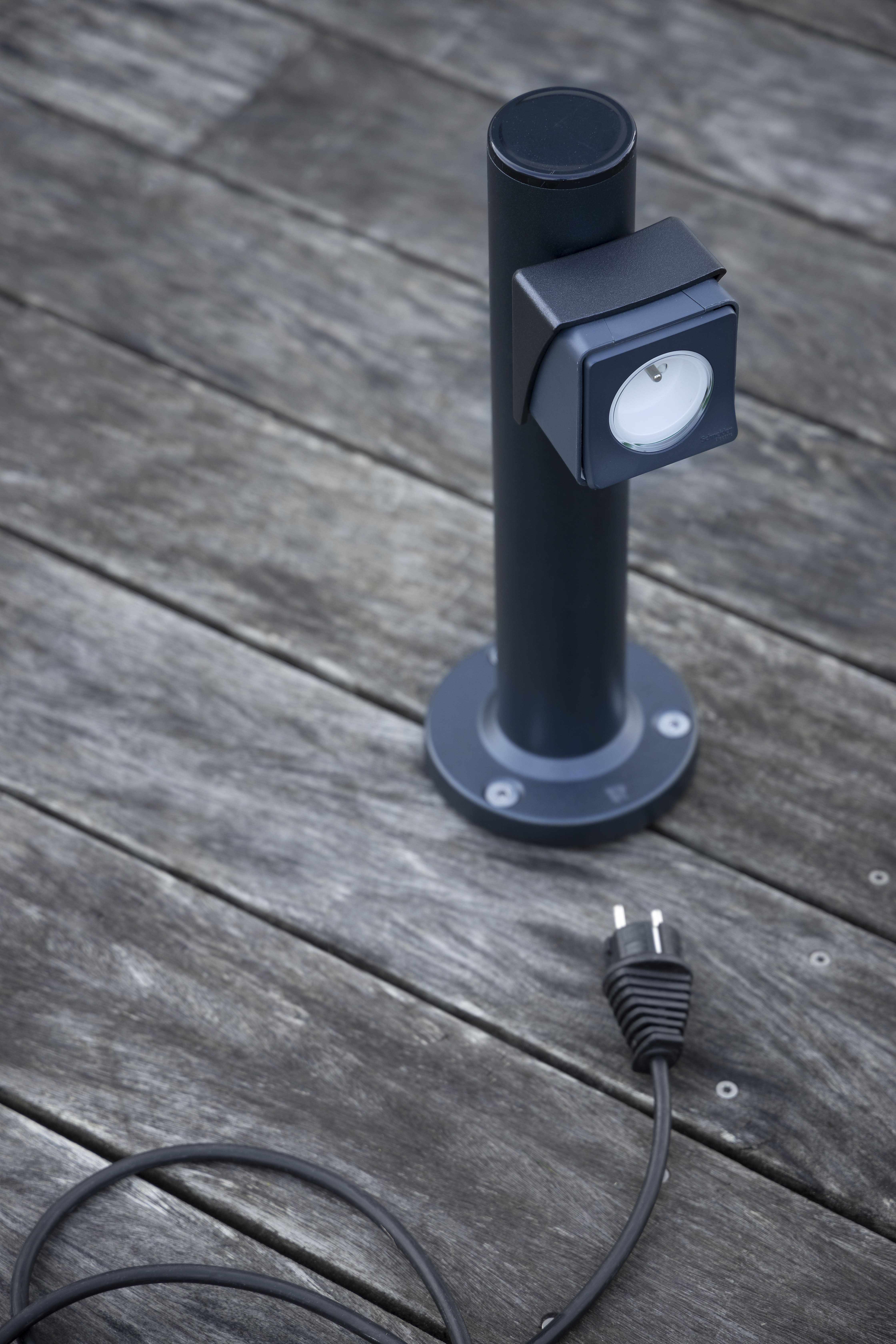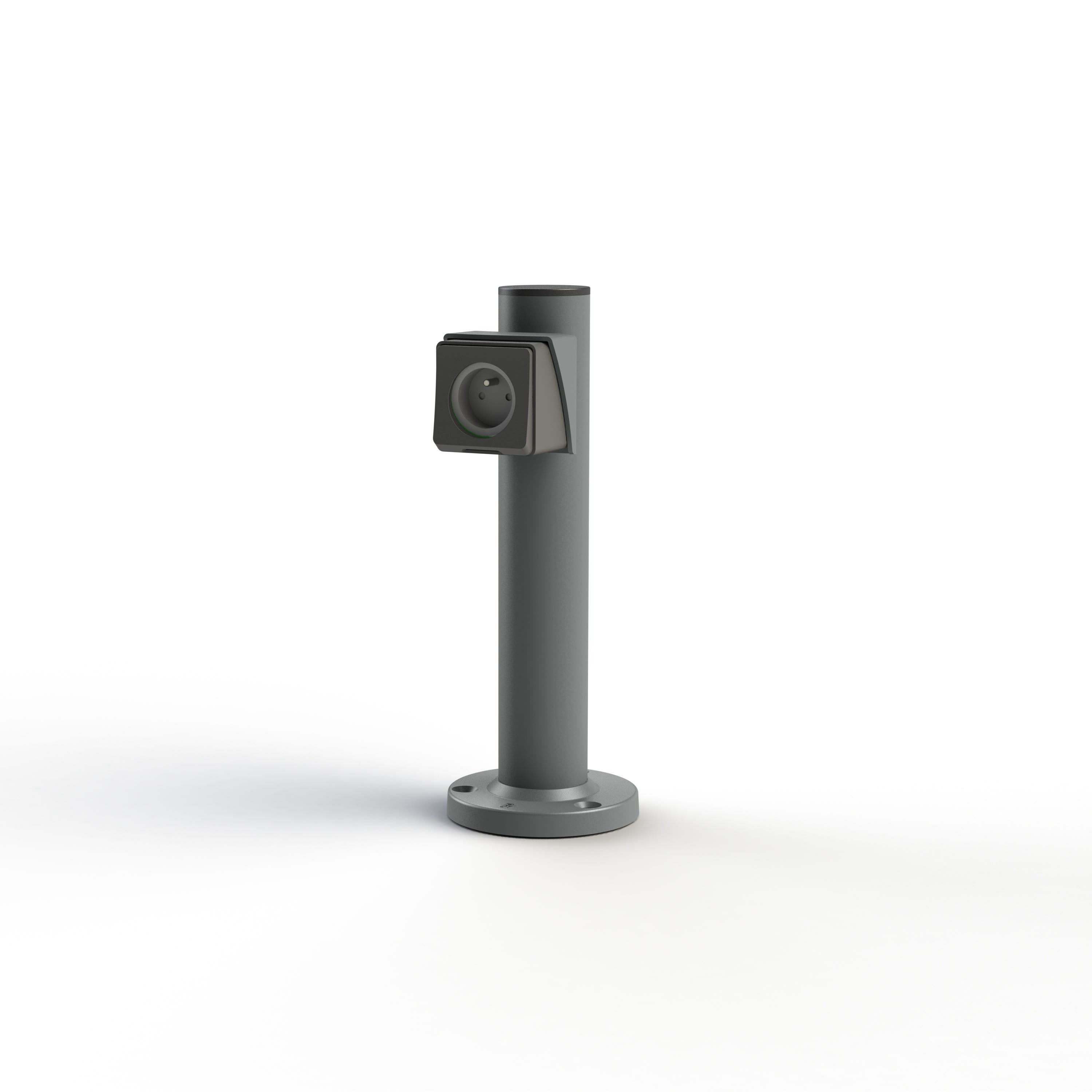 Accessoire, borne en aluminium équipée d'une prise de courant IP55. Teinte Gris métal 023