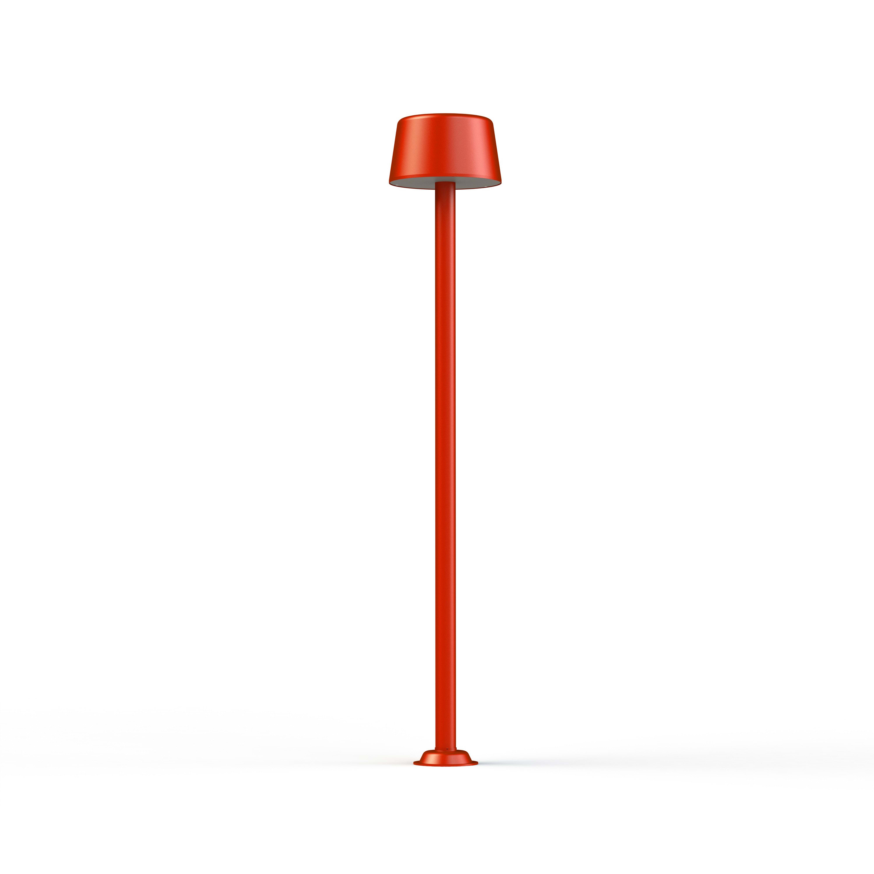 Lampadaire 1 tête BARK en aluminium, E27, h= 2200mm, IP55, classe 1, diffuseur méthacrylate satiné. Teinte RAL 3020 Rouge signalisation 056. Garantie 25 ans anticorrosion sur l'aluminium