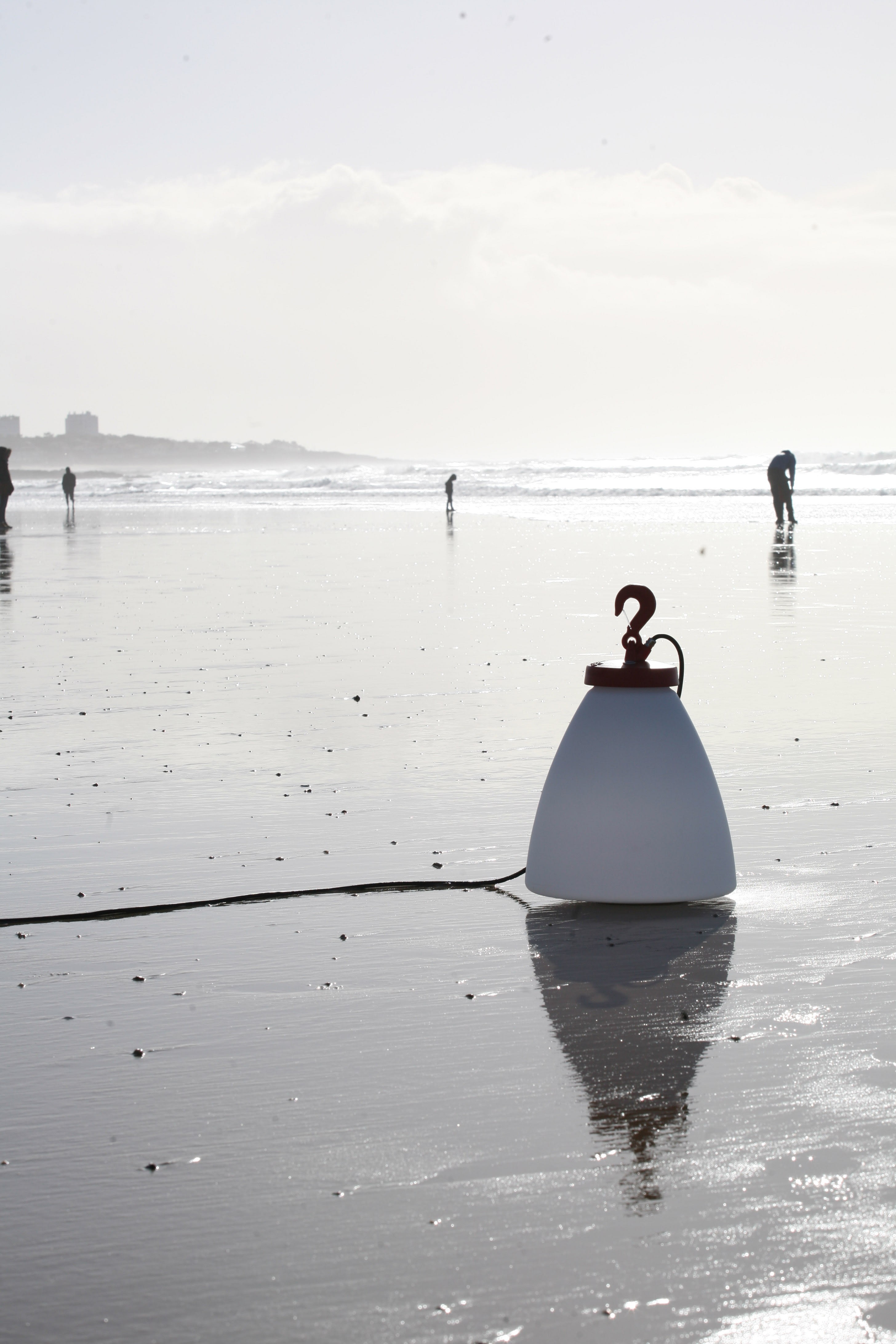 Luminaire nomade GRUMO avec prise UK type G, E27, IP65, IK09, classe 1 en aluminium Interrupteur intégré. Globe conique en polycarbonate opale satiné. Teinte RAL 7021 Gris noir 107. Garantie 25 ans anticorrosion sur l'aluminium