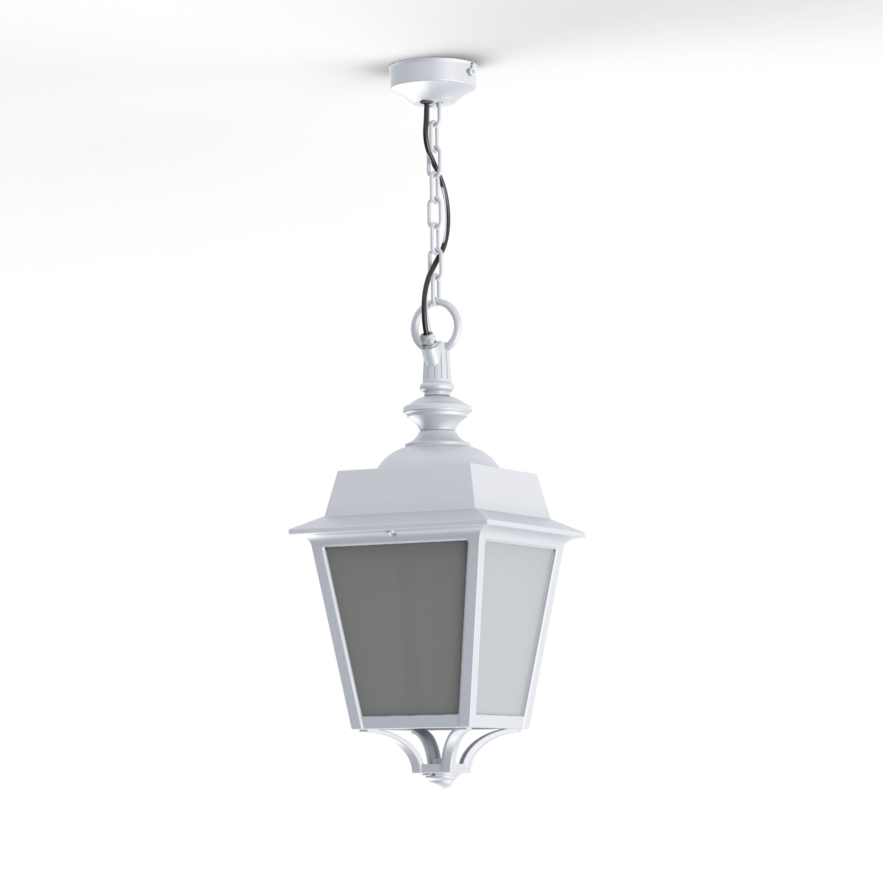 Suspension chaîne PLACE DES VOSGES EVOLUTION en aluminium, E27, IP65, classe 1, bloc diffuseur méthacrylate opale. Teinte Blanc 001. Garantie 25 ans anticorrosion sur l'aluminium