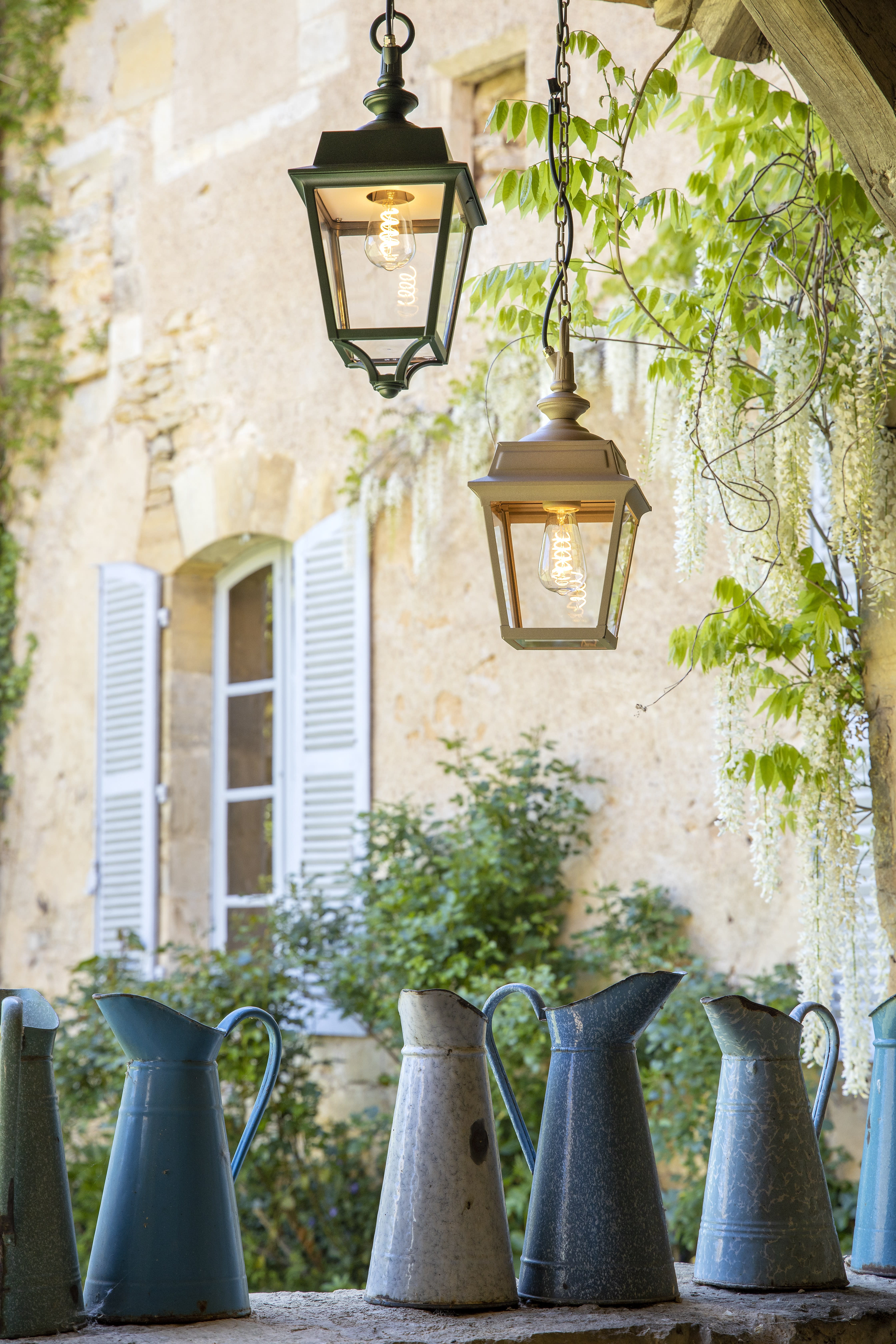 Suspension chaîne PLACE DES VOSGES TRADITION en aluminium, E27, IP44, classe 1, diffuseurs verre opale. Teinte Gris ardoise 059. Garantie 25 ans anticorrosion sur l'aluminium