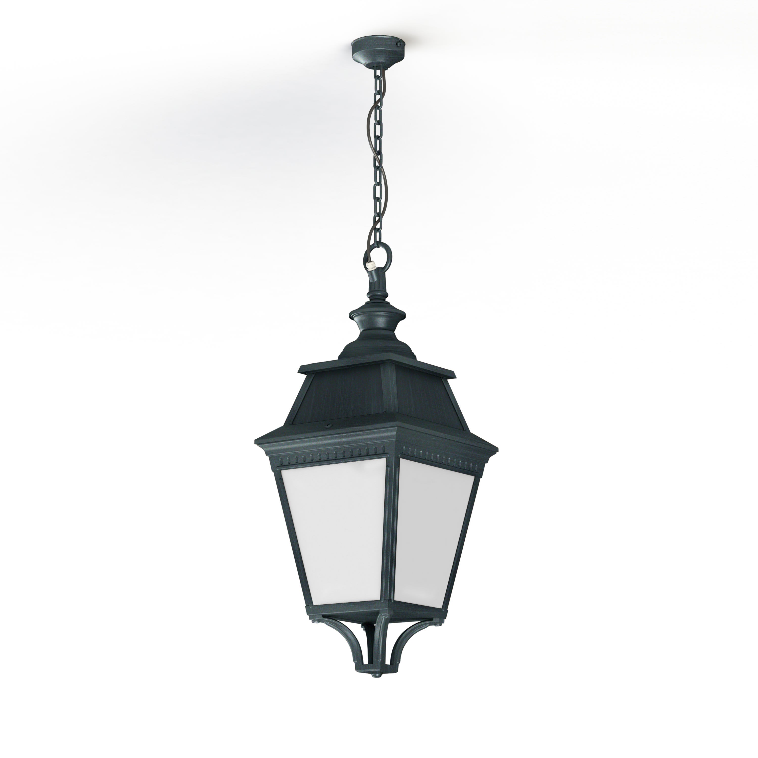 Suspension chaîne AVENUE 3 en aluminium, LED 35W 3000°K, IP44, classe 1, diffuseur méthacrylate opale. Finition Patine vert de gris 008. Garantie 25 ans anticorrosion sur l'aluminium