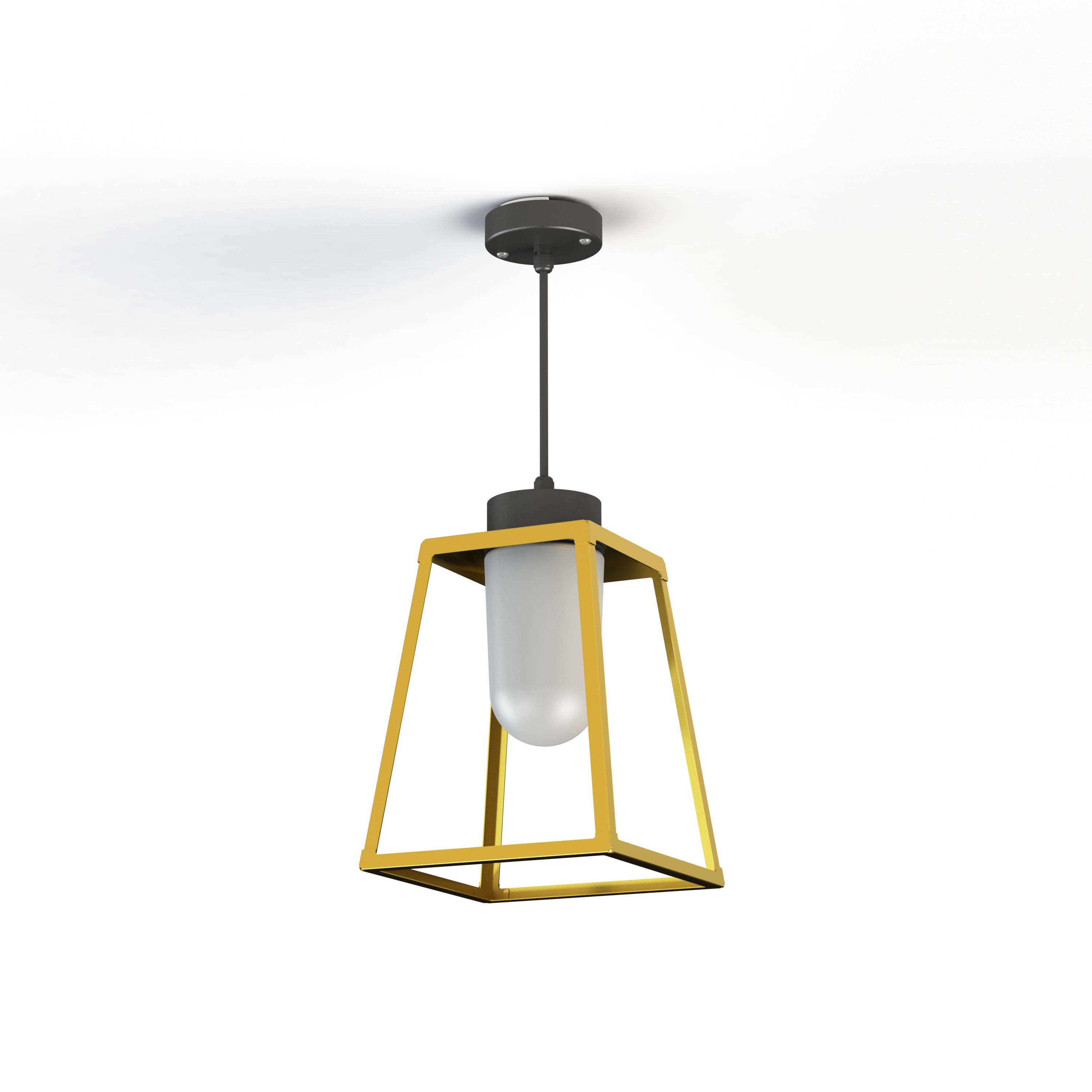 Suspension câble LAMPIOK 1 hauteur 880mm, E27, IP65, classe 2, diffuseur verre dépoli. Matière cage : laiton vernis teinté 070. Matière coupelles : aluminium. Teinte RAL 7021 Gris noir 107