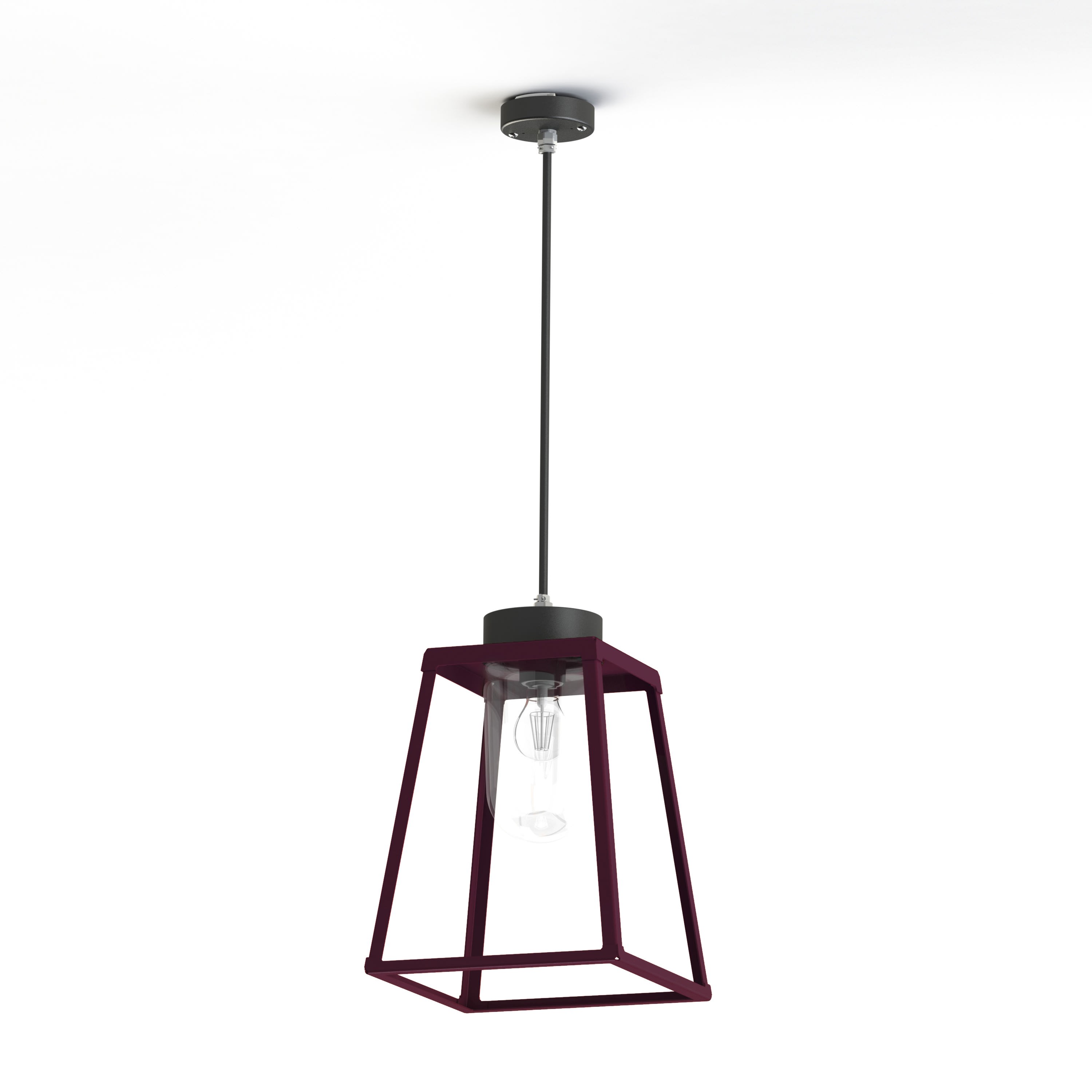Suspension LAMPIOK 2 en aluminium, E27, IP65, classe 1, diffuseur verre clair. Cage : teinte RAL 3005 Rouge vin 066. Coupelles : teinte RAL 7021 Gris noir 107. Garantie 25 ans anticorrosion sur l'aluminium