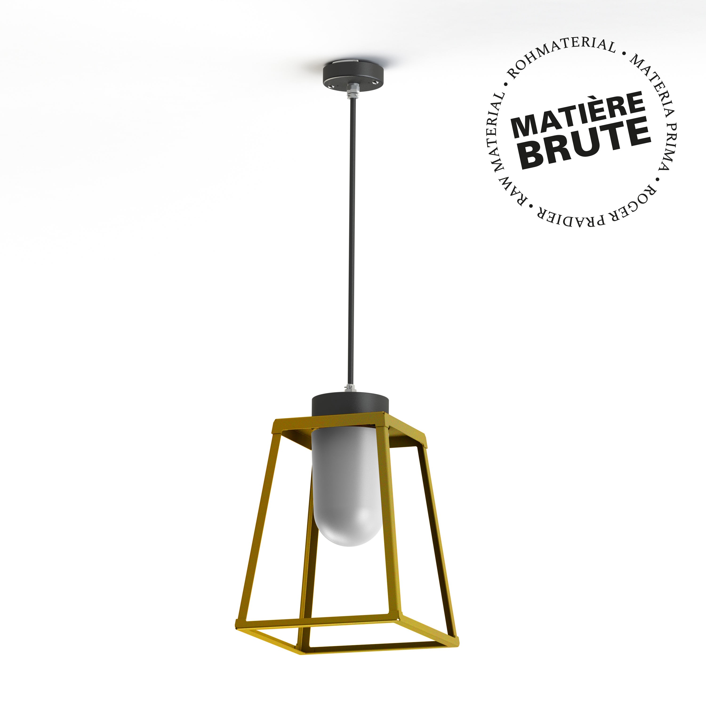 Suspension LAMPIOK 2, E27, IP65, classe 1, diffuseur verre opale. Matière cage: Laiton brut 072 - Matière coupelles : Aluminium Teinte RAL 7021 Gris noir 107