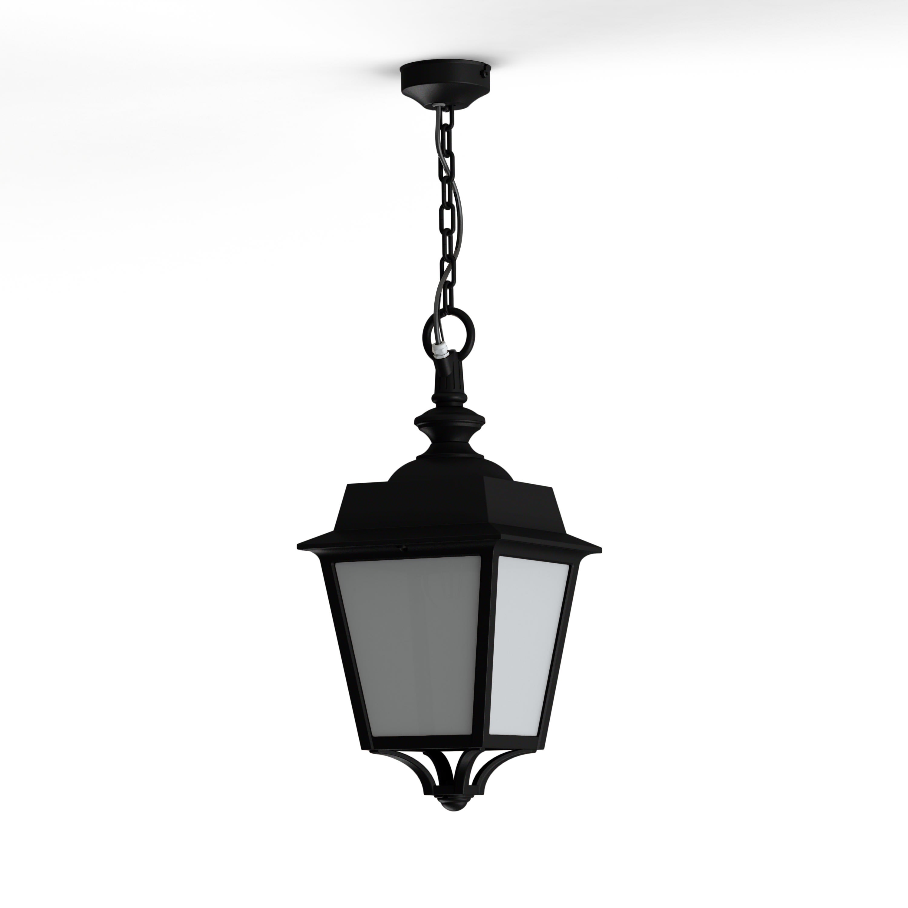 Suspension chaîne PLACE DES VOSGES EVOLUTION en aluminium, E27, IP65, classe 1, bloc diffuseur méthacrylate opale. Teinte RAL 9005 Noir foncé 000. Garantie 25 ans anticorrosion sur l'aluminium