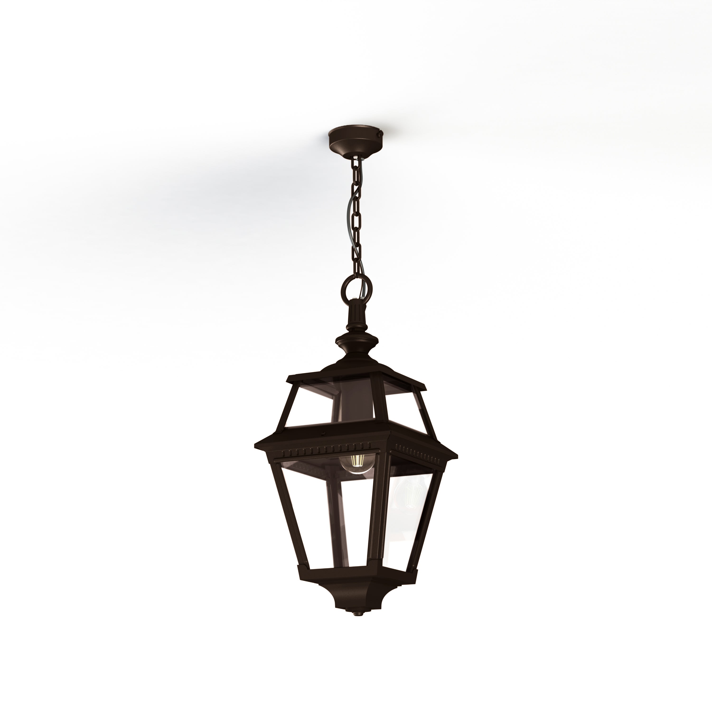 Suspension chaîne PLACE DES VOSGES 2 en aluminium, E27, IP44, classe 1, diffuseurs verre clair. Teinte Rouille 046. Garantie 25 ans anticorrosion sur l'aluminium