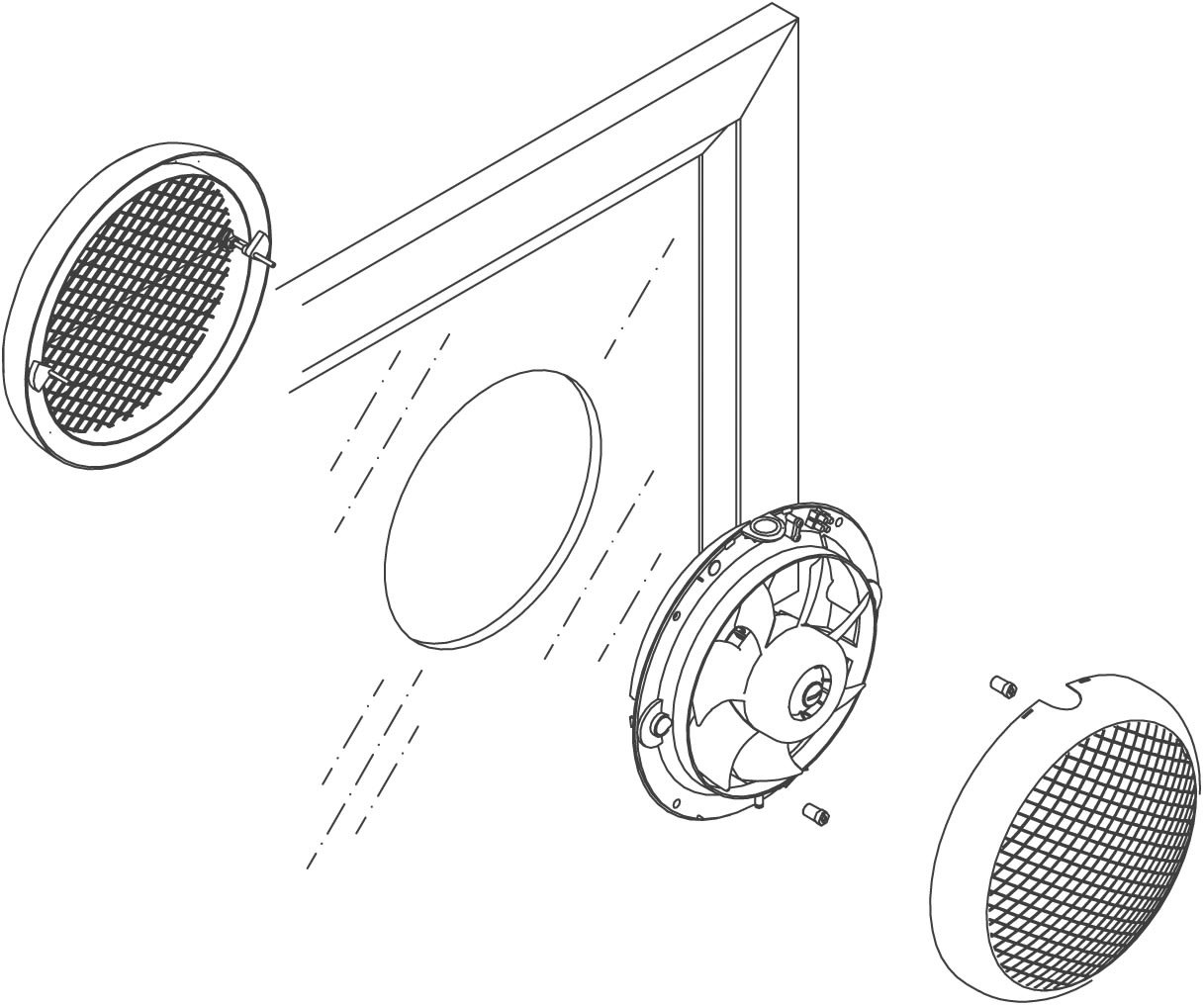 S&P - Aérateur de vitre ou mur, 450 m3/h, 28W, grille intérieure, volets extérieurs - 450286