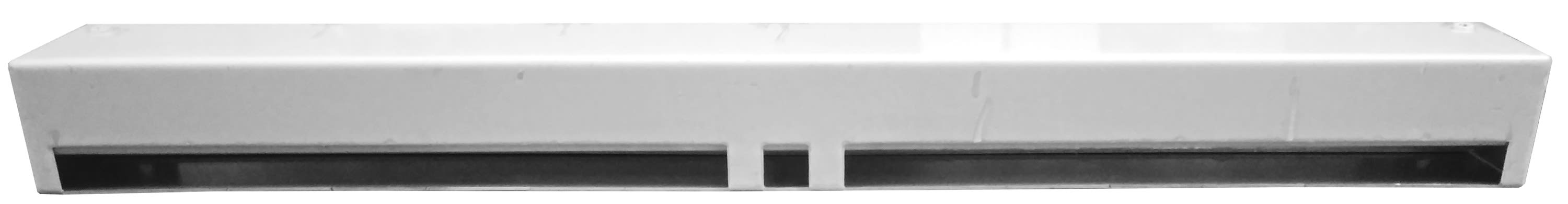 Capuchon de façade acoustique pour entrée d'air blanche en aluminium. Permet d'améliorer l'isolement acoustique de l'entrée d'air.