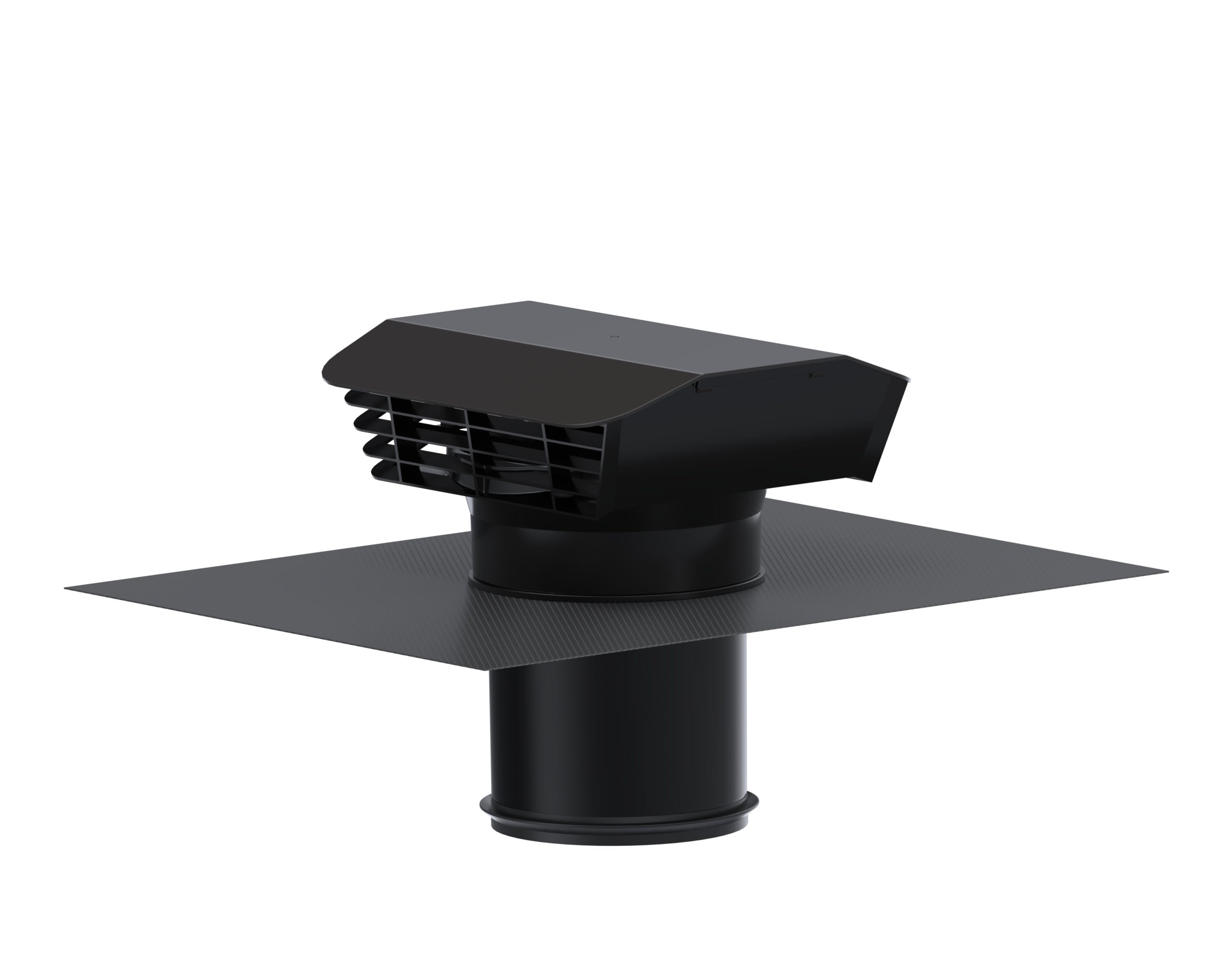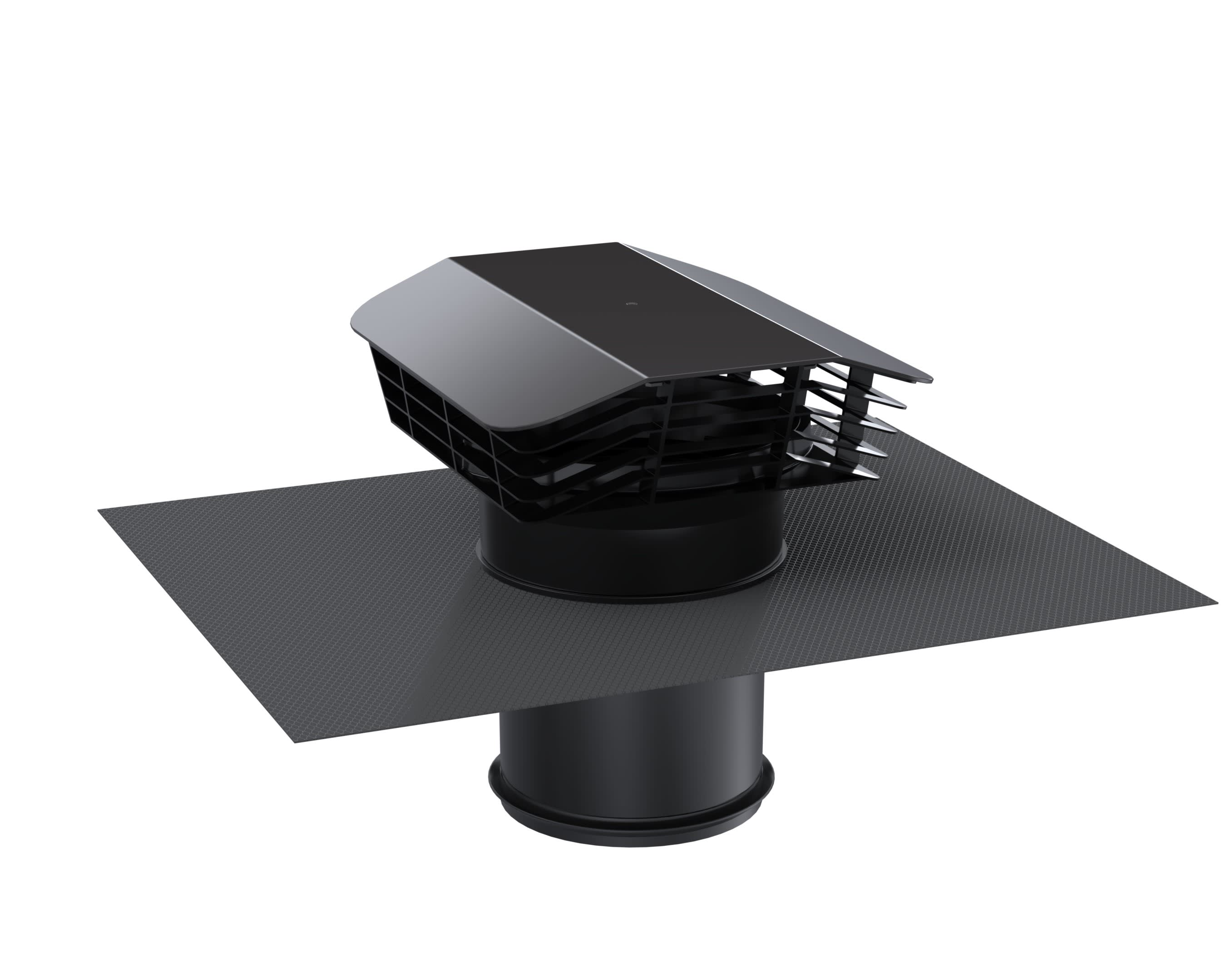 Chapeau toiture plastique, diamètre de raccordement 125 mm, rejet d'air 210 m3/h, prise d'air 320 m3/h, capot pare-pluie en plastique couleur ardoise avec grille de protection. Abergement en résine, maléable. Ne contient pas de plomb.
