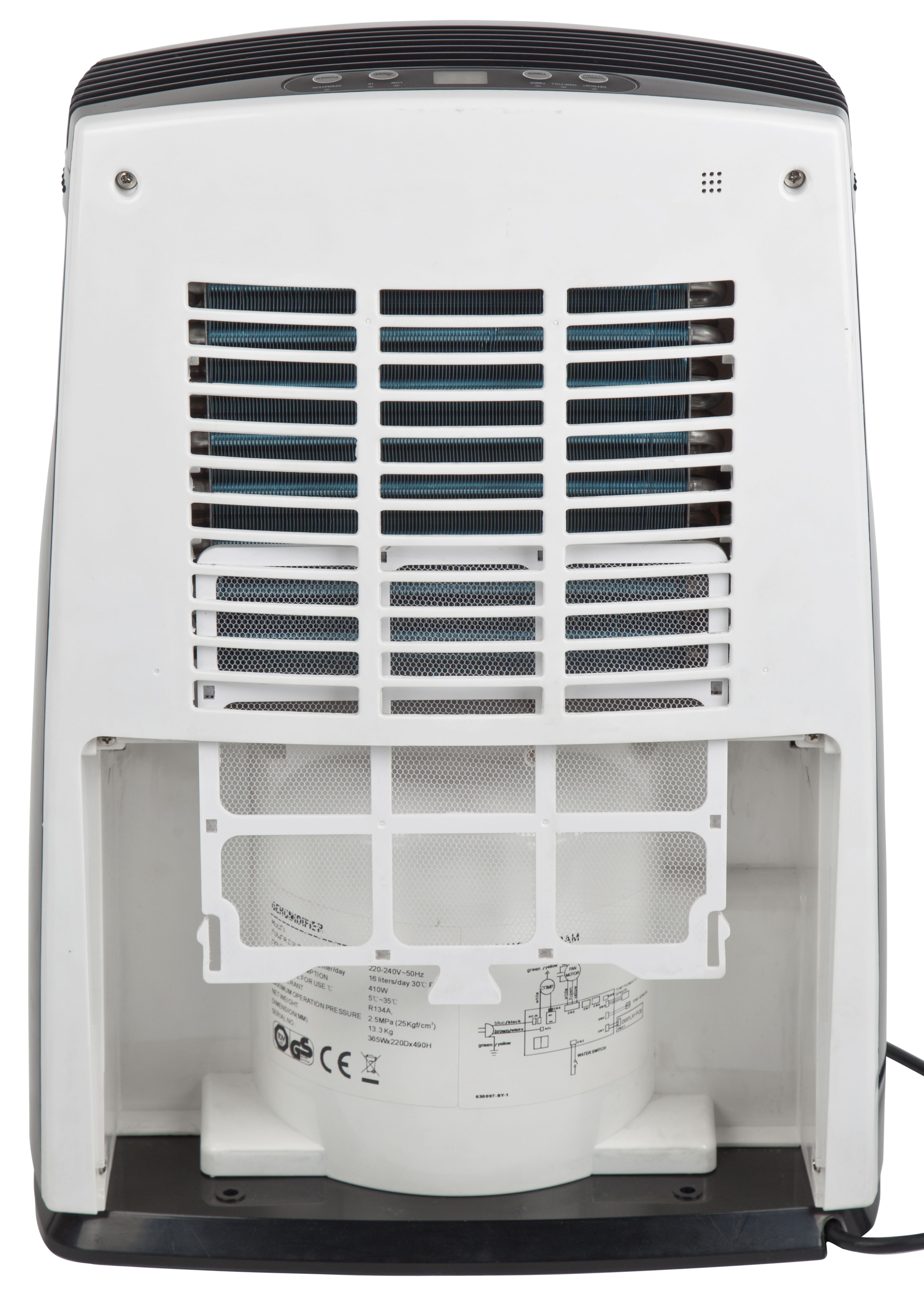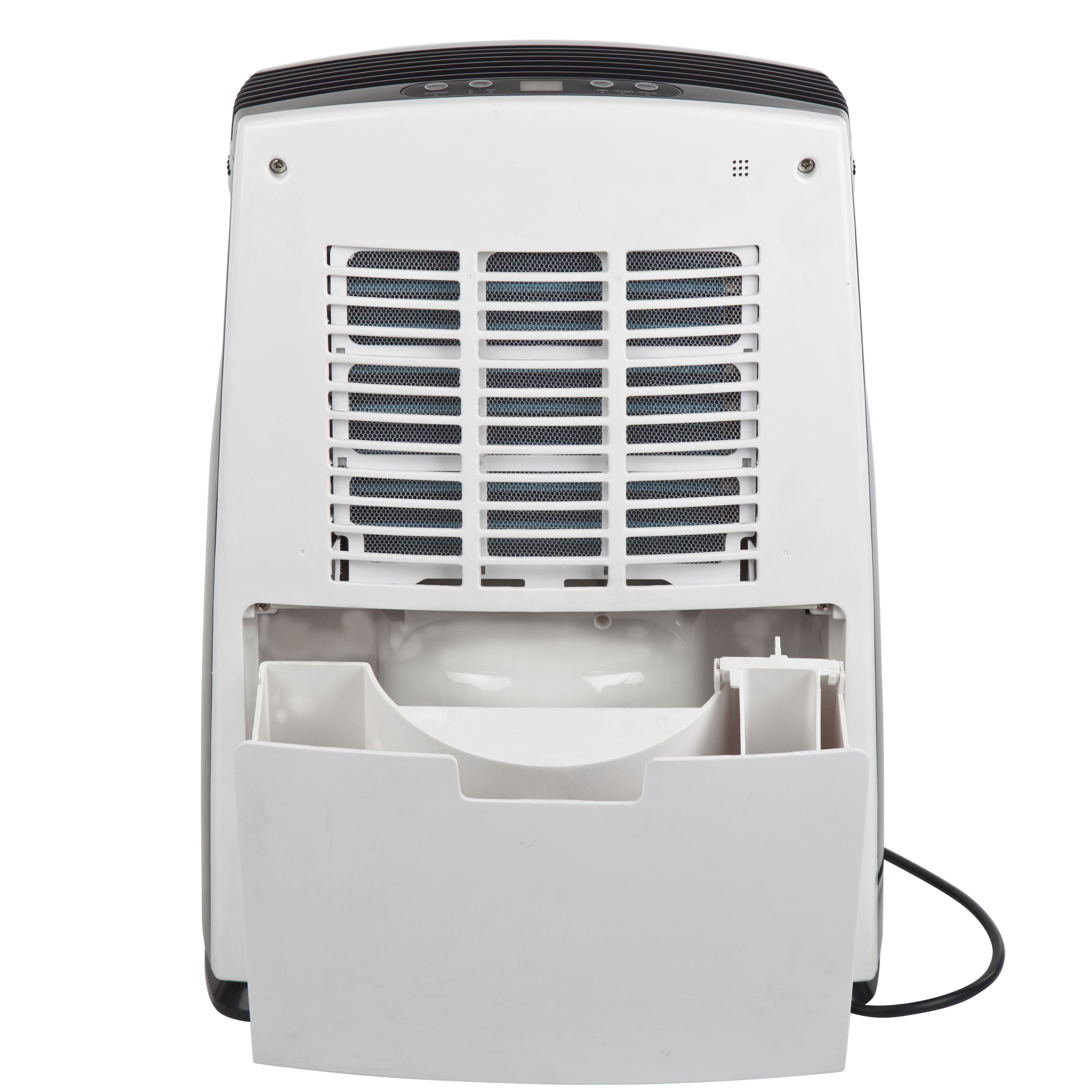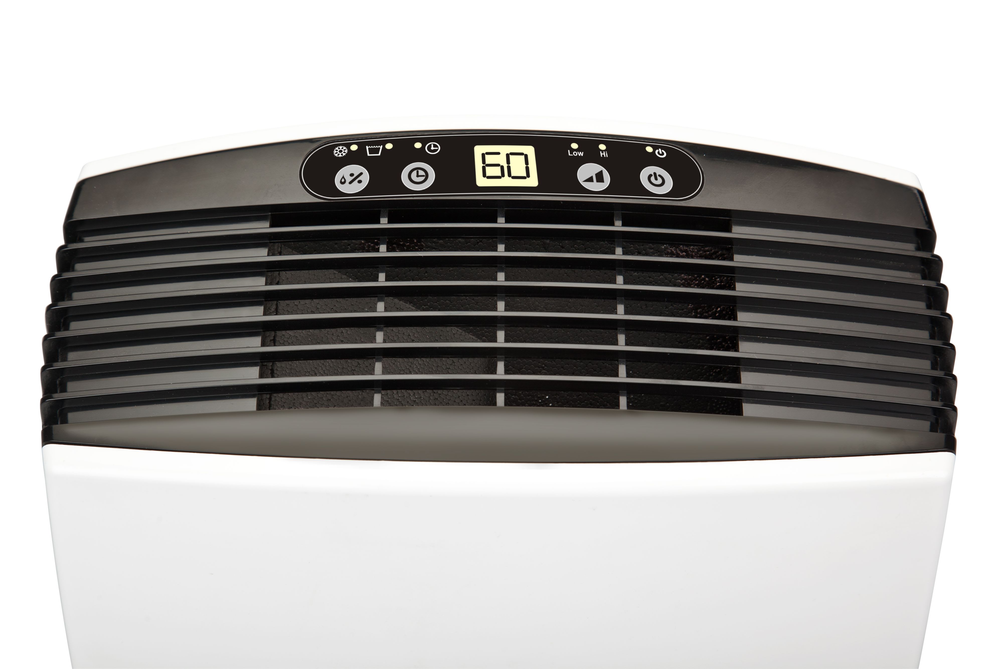 Déshumidificateur mobile et compact pour surface optimum 40 m2, 350 W, 16L/24h, programmation de fonctionnement de 1 à 24h, filtre lavable, évacuation des condensats, réservoir 2L, détection réglable de l'humidité de 60 à 90%, gaz R290