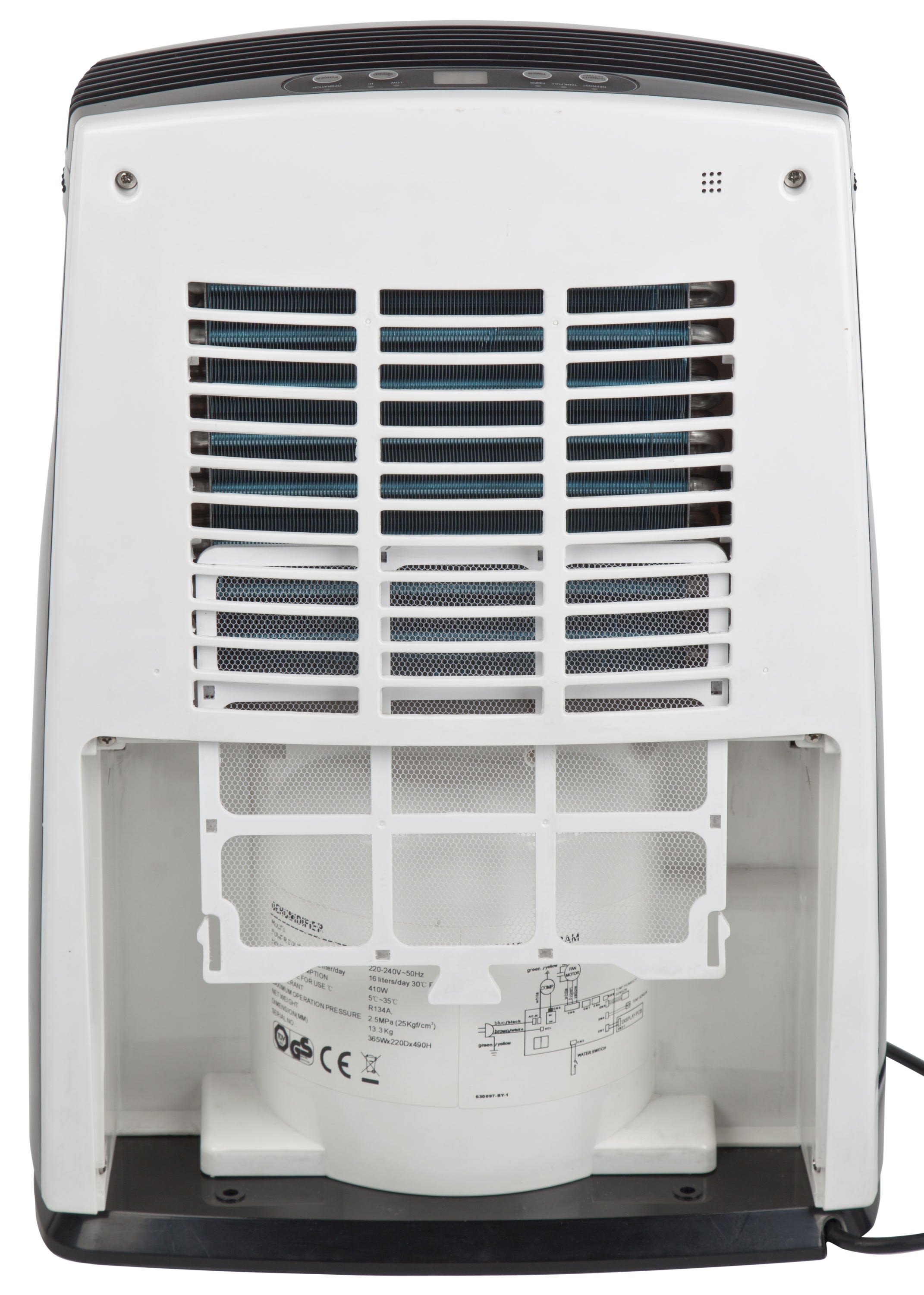 Déshumidificateur mobile et compact pour surface optimum 45 m2, 415 W, 20L/24h, programmation de fonctionnement de 1 à 24h, filtre lavable, évacuation des condensats, réservoir 2L, détection réglable de l'humidité de 60 à 90%, gaz R290