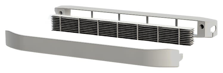 Entrée d'air filtrante autoréglable couleur gris avec filtre à particules type pollens, bactéries, virus, composés organiques volatils-COV, pour assurer la meilleure protection contre la pollution extérieure. Capuchon extérieur inclus