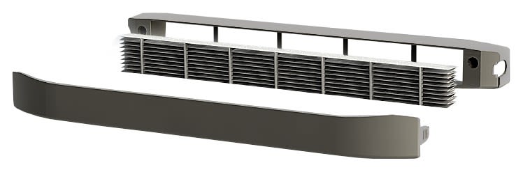 Entrée d'air filtrante autoréglable couleur bronze avec filtre à particules type pollens, bactéries, virus, composés organiques volatils-COV, pour assurer la meilleure protection contre la pollution extérieure. Capuchon extérieur inclus