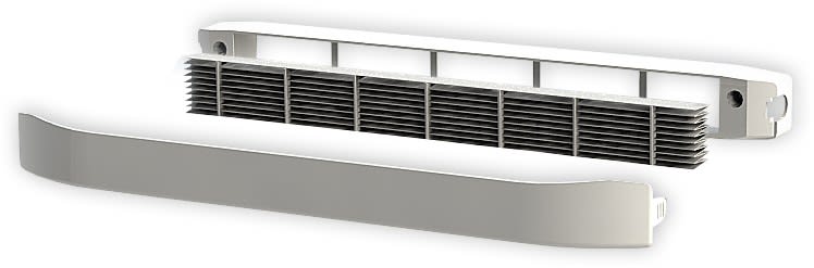 Entrée d'air filtrante autoréglable couleur blanc avec filtre à particules type pollens, bactéries, virus, composés organiques volatils-COV, pour assurer la meilleure protection contre la pollution extérieure. Capuchon extérieur inclus