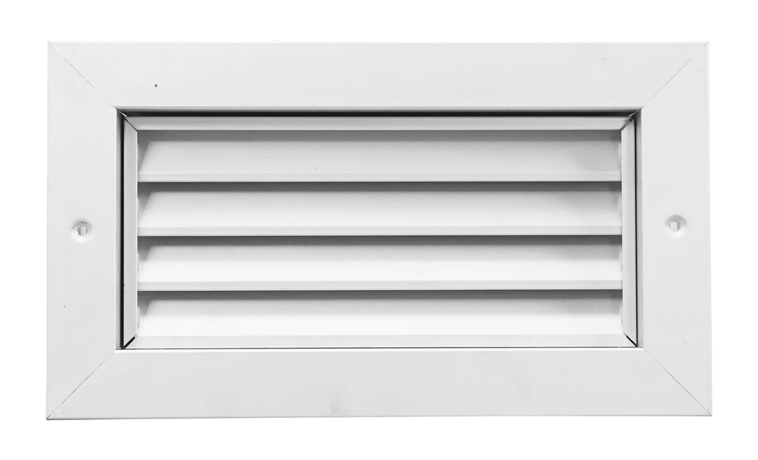 Grille de transfert anti-vue, blanc, contre cadre de finition réglable en épaisseur de 25 à 53 mm, fixation par vis apparentes, dimensions 200 x 100 mm