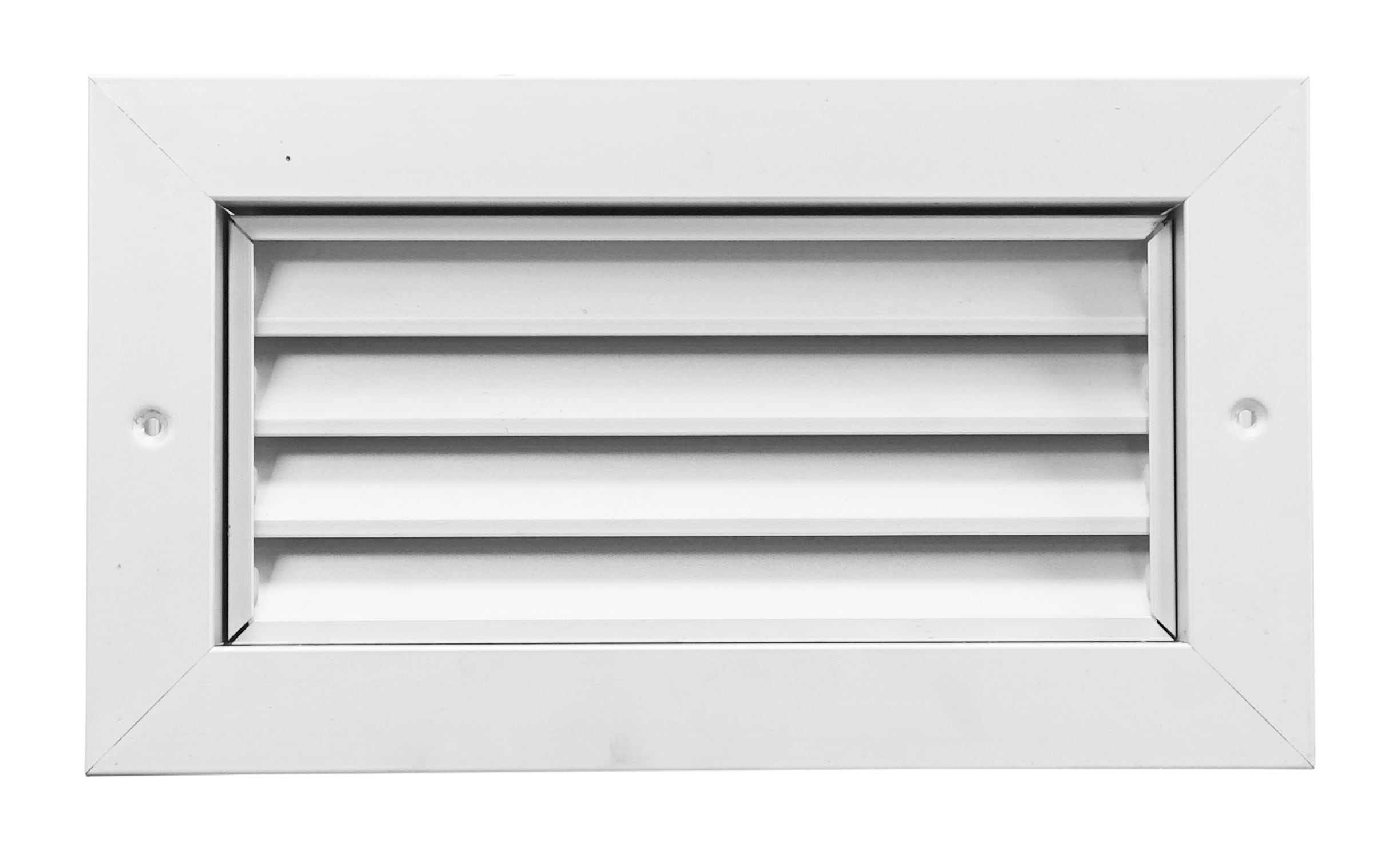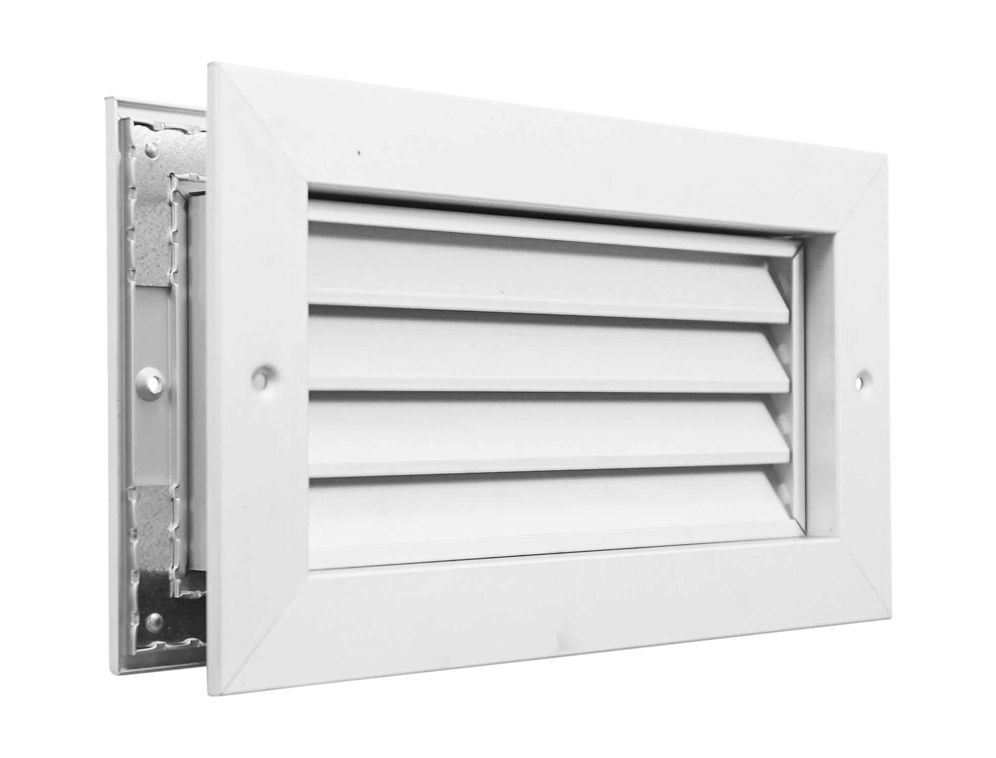 Grille de transfert anti-vue, blanc, contre cadre de finition réglable en épaisseur de 25 à 53 mm, fixation par vis apparentes, dimensions 200 x 200 mm
