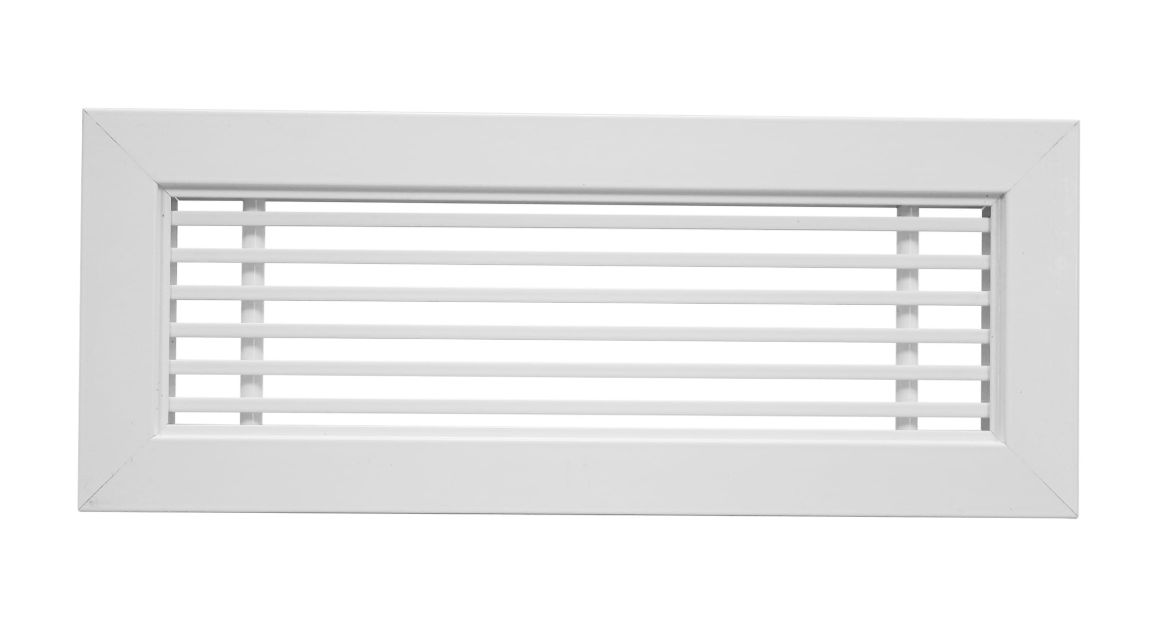 Grille linéaire de soufflage et de reprise à ailettes fixes, blanc, débits de 460 à 1380 m3/h, dimensions 600 x 200 mm