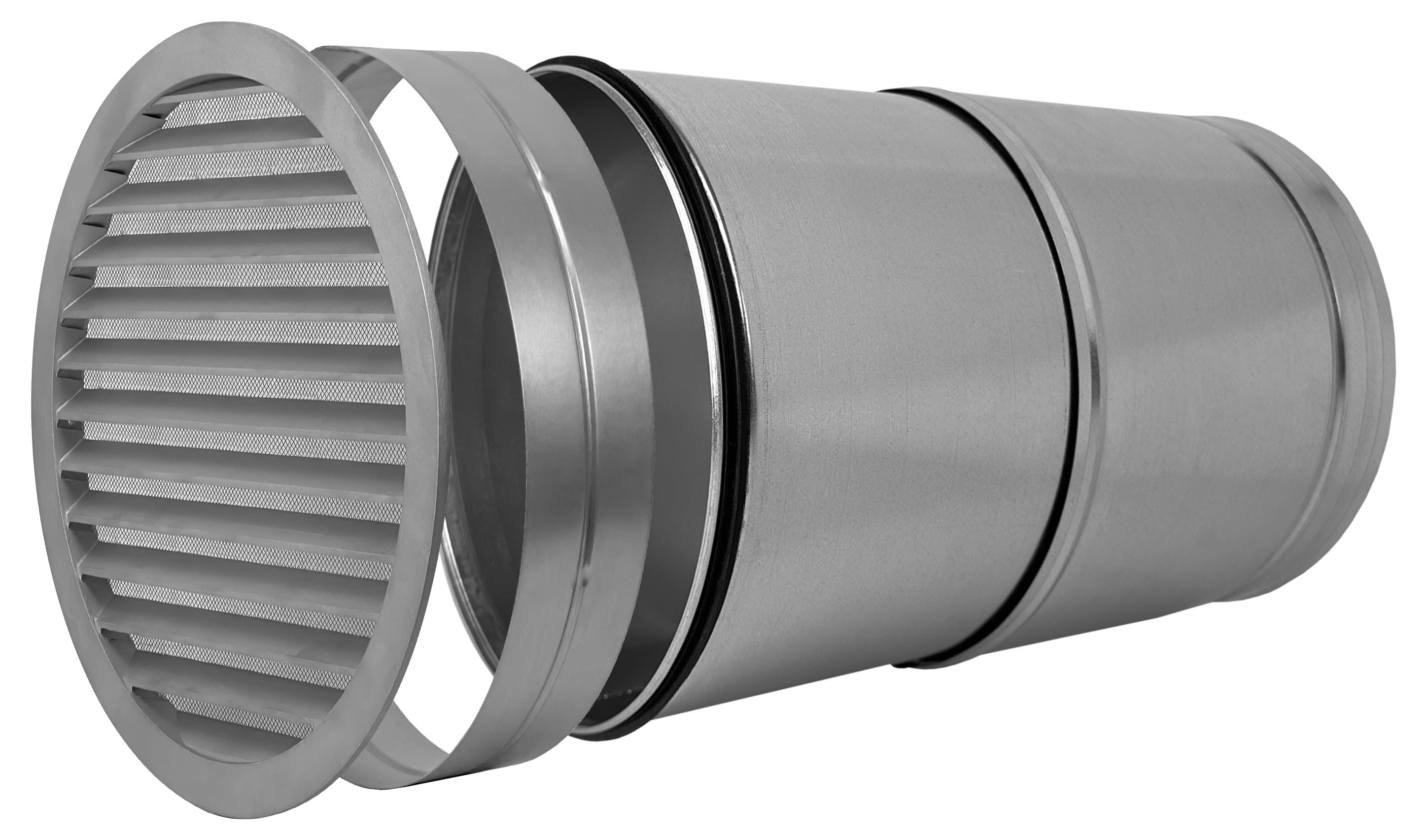 Kit de prise d'air neuf ou rejet en façade USAV + Bride + Manchon téléscopique adapté à tous les produits de la gamme PURECLASS. Idéal pour adapter le conduit de sortie à la longueur disponible