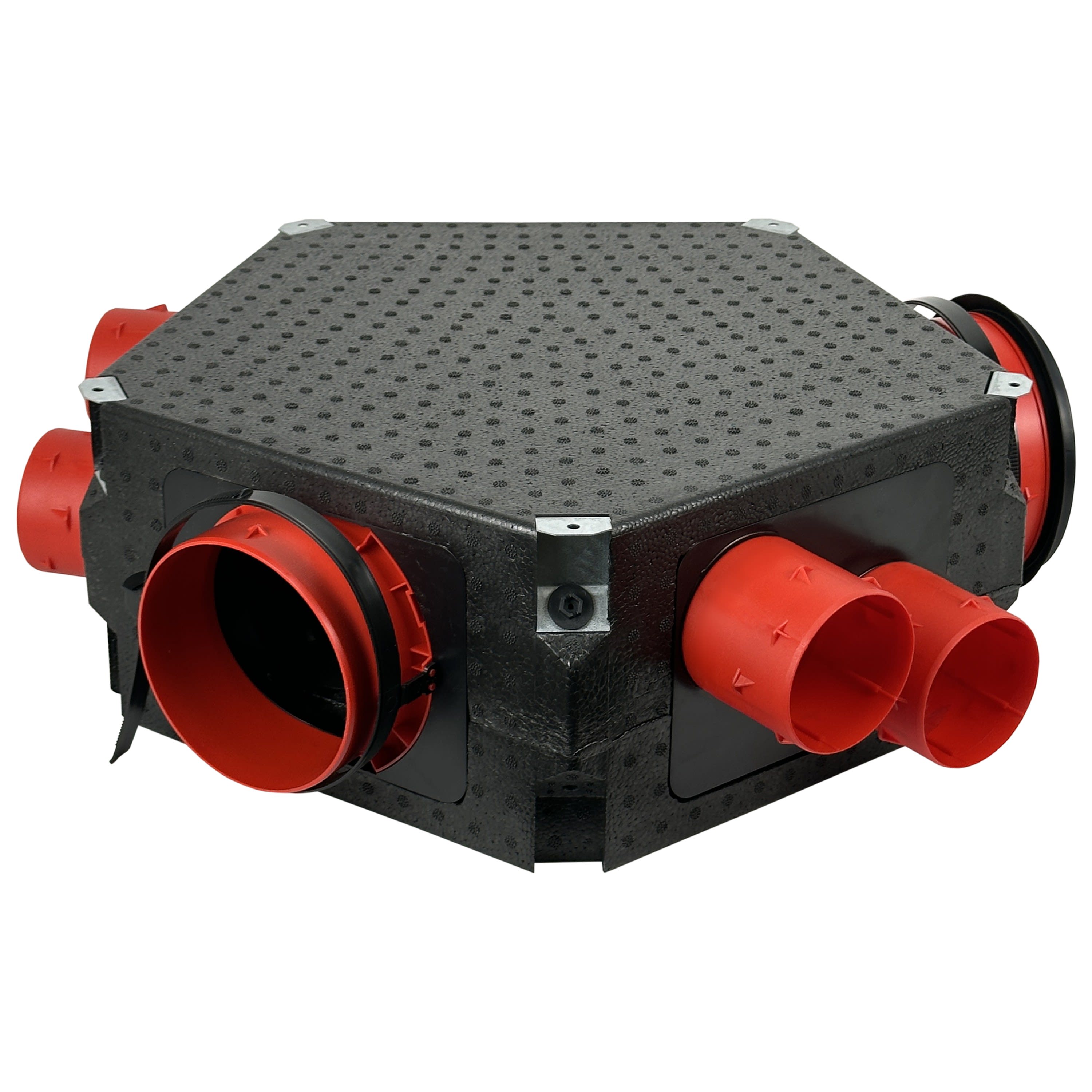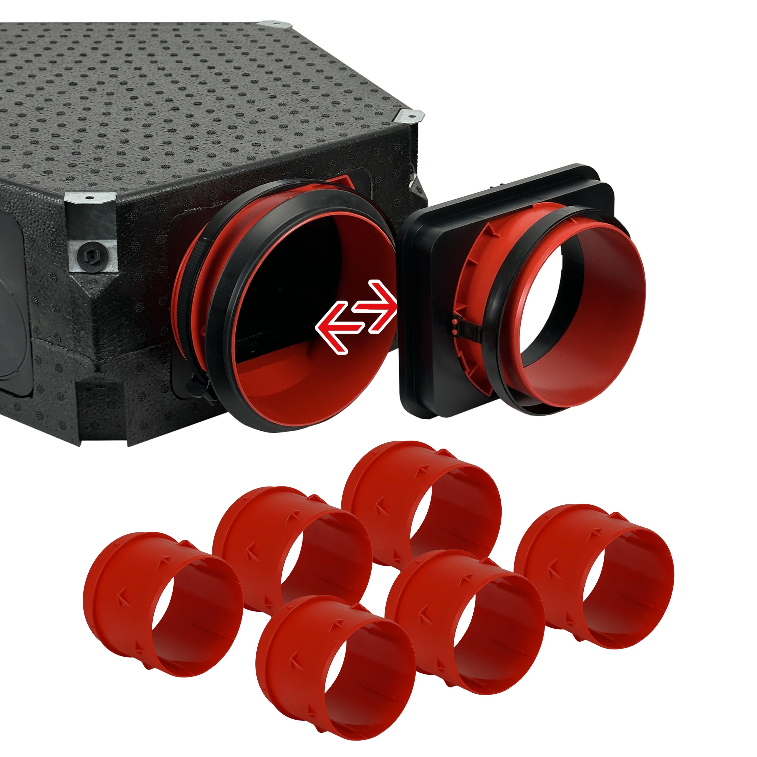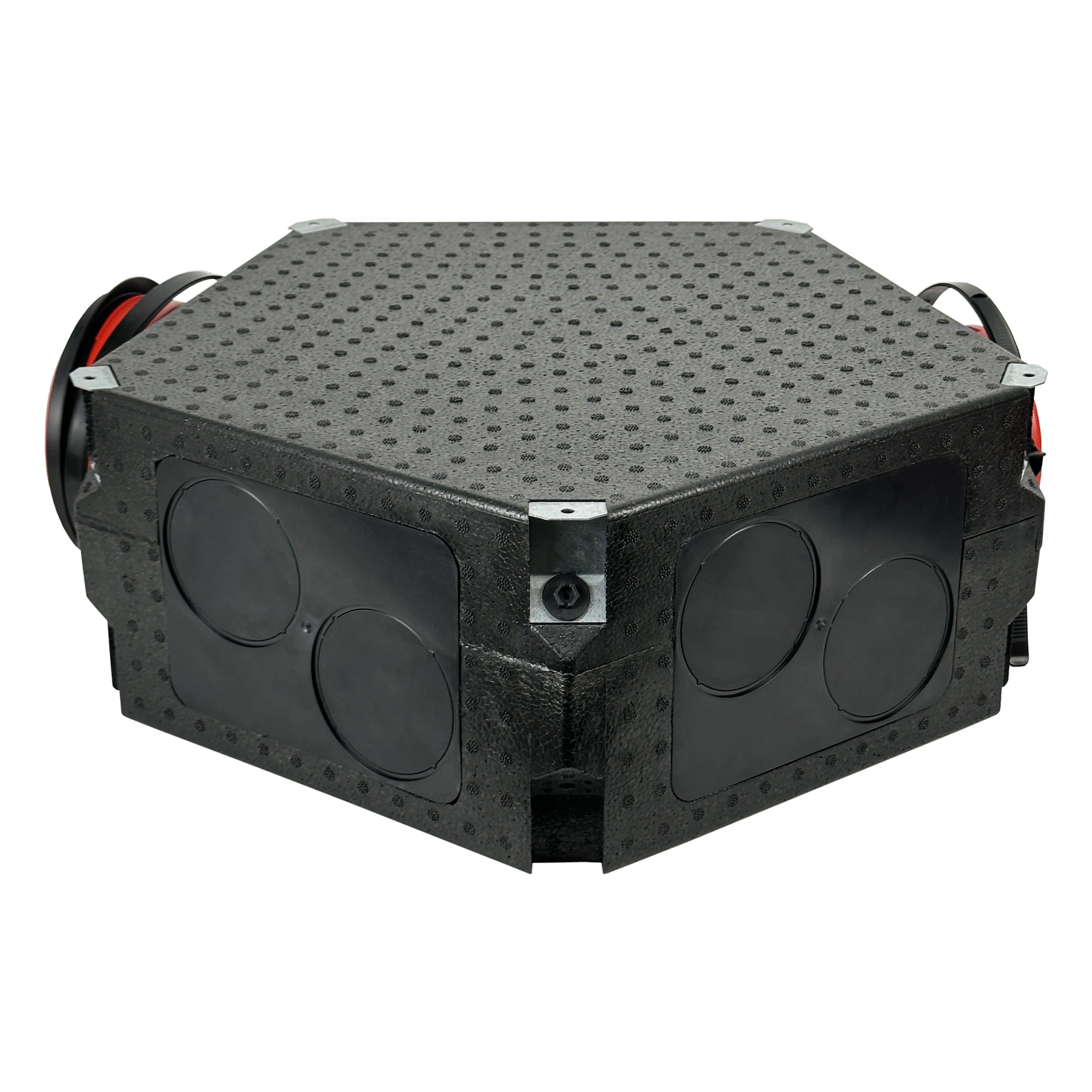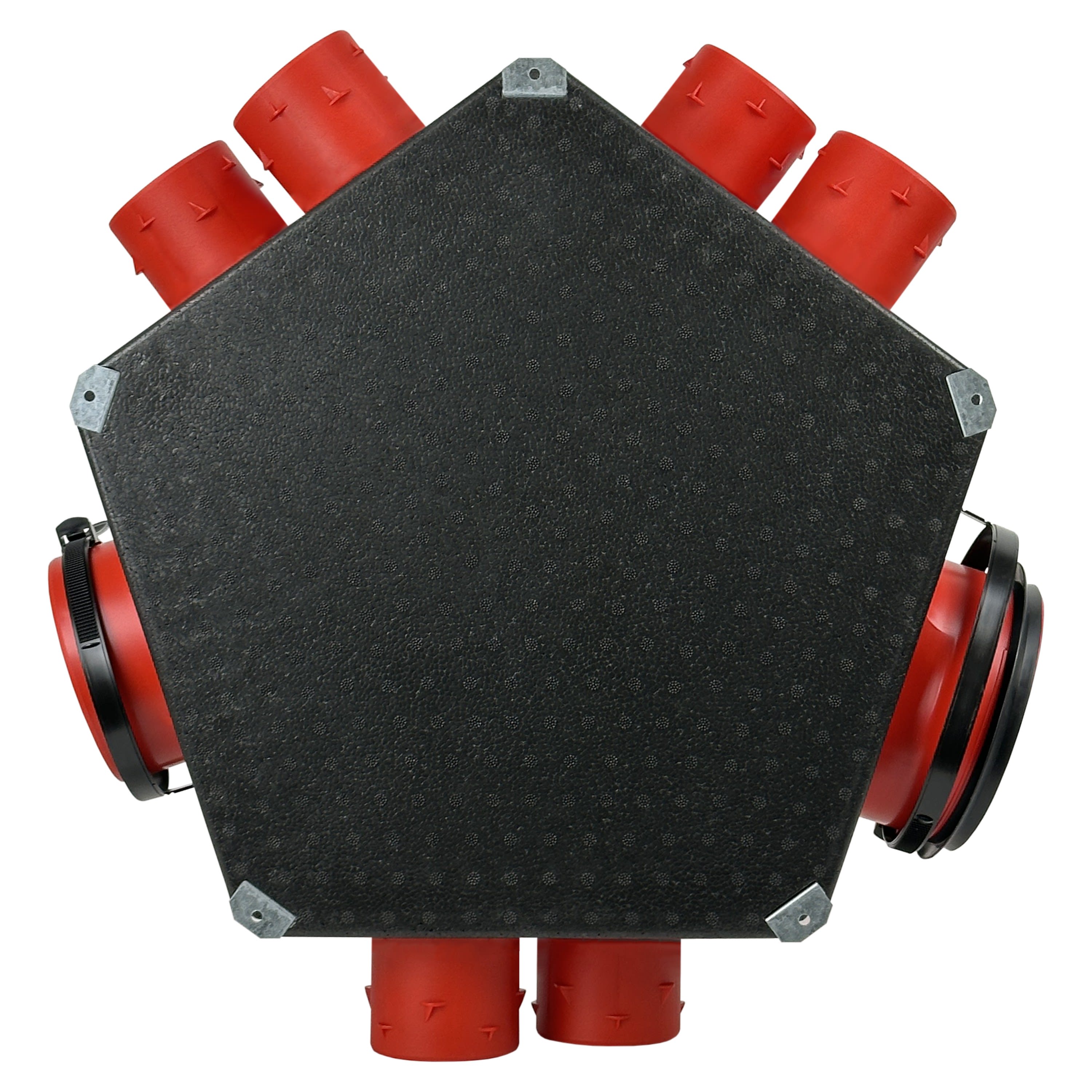 Plénum isolé universel d'extraction 6 piquages D 80 mm, 1 piquage D 125 mm, 1 raccord D 125 ou D 150/160 mm.