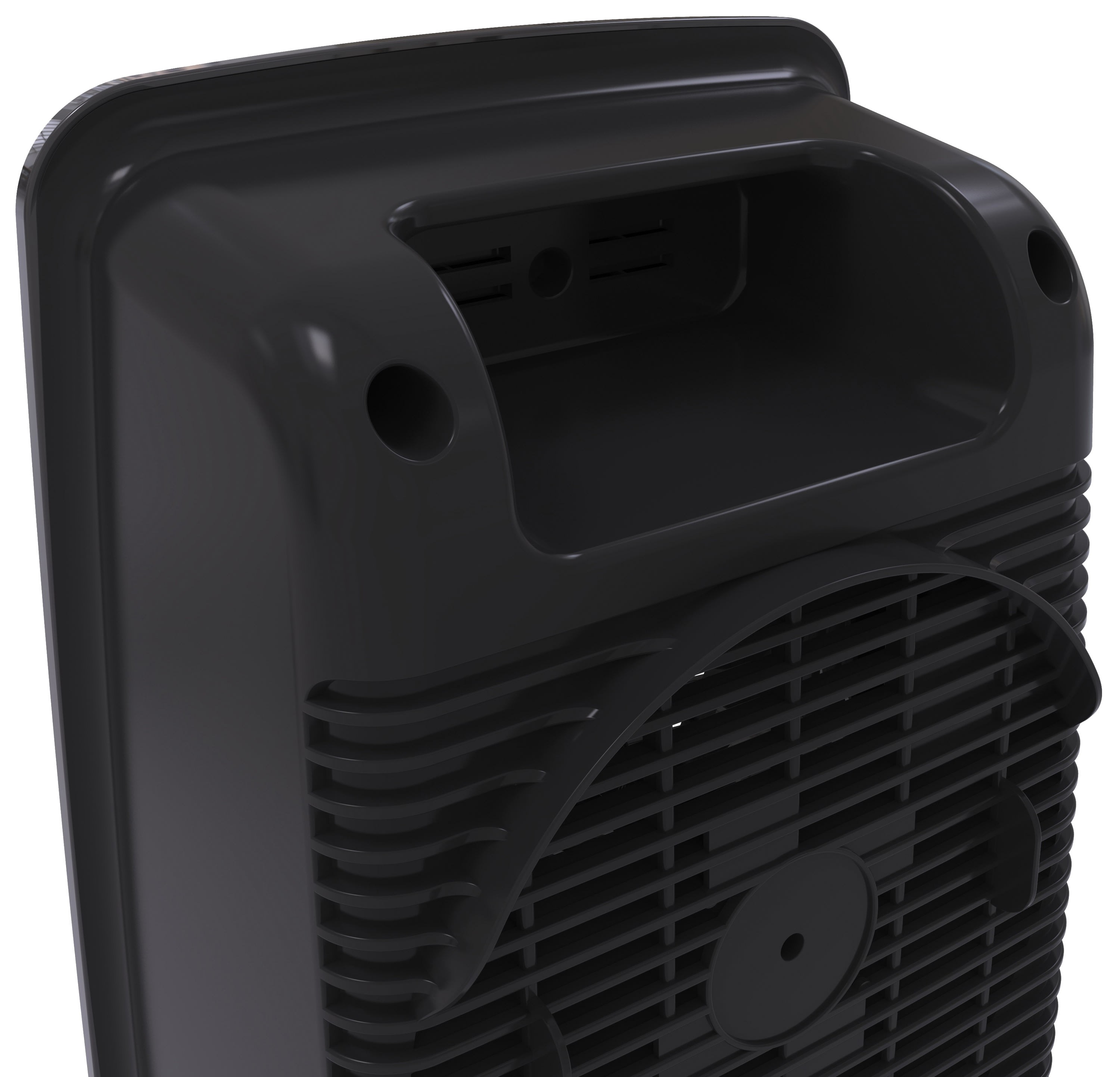 Radiateur soufflant vertical auto-extinguible, puissance de chauffe 1000/2000 W, thermostat automatique, sécurité anti-basculement et protection thermique, ventilation d'été, IP21 classe II