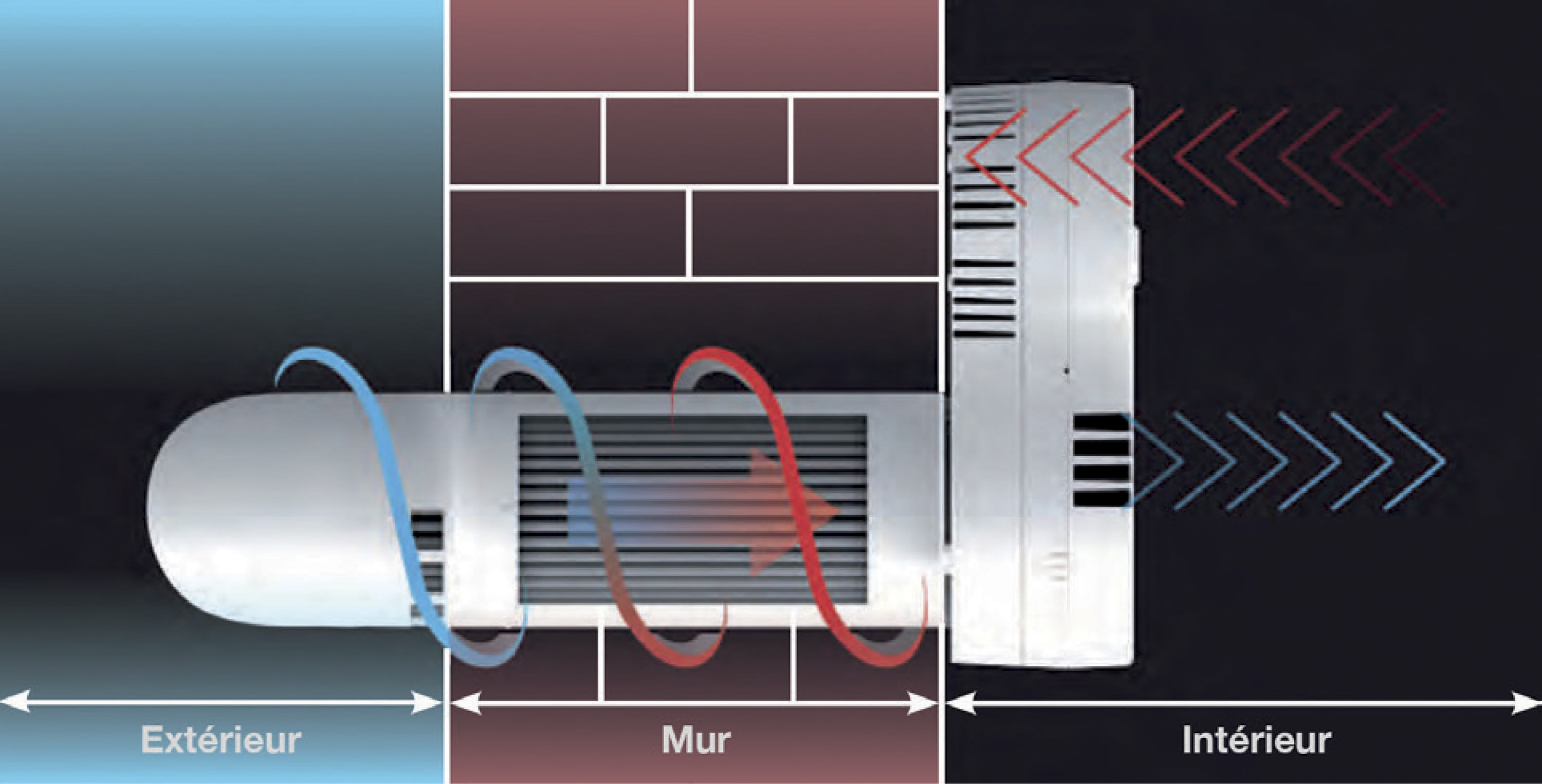 By-pass estival intégré : dès que la température atteint 25°C, l'appareil fonctionne automatiquement en mode "extraction". Quand la température chute, l'appareil revient en mode "récupération d'énergie", sans intervention extérieure.